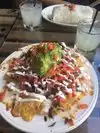 Seattle posts health department ratings in the windows of restaurants. If I had noticed this one - at the lower end of the scale of ratings - I might have thought twice. But we went in and were pleasantly delighted. The picture I see posted with the restaurant name is representative of the OVERWHELMING plate of nachos, dressed to the hilt, that were delivered to our table. WOW! A $13 nacho plate (with pollo) that completely covered the plate in a towering stack. WOW! And they were great! But we couldn't possibly finish all that much. It was unique to be told there was a little refrigerator with six - count them...SIX - different hot-to-mild sauces that we could splash all over the nachos. Would we go back? You bet!