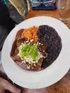 The atmosphere here is very welcoming. We sat near the open window next to the street and enjoyed the street views and cool breeze. I had the veggie enchiladas with the green tomatillo sauce. It was delicious! Filled with sweet potatoes and asparagus, with a side of beans and rice. The rice was also super delicious! Very filling, and worth the price. 😋