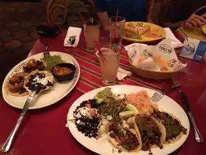 Everyone in our party loved what they ordered. My fish (mahi mahi) tacos were delicious with cabbage escabeche, chipotle aoli, guac, rice, and black beans in a fried tortilla shell. The chips and salsa come to the table fresh and tasty. The service was friendly and efficient and the decor was darling. There is a large patio for outdoor covered dining. Really nice. I'd return tomorrow. The quesadilla came with onions, which the lady had requested not to have, though, so they had to make a new one. If you have special request, better be really clear.