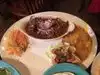 Good dinner! Hubby enjoyed the corn tamales. I loved my rolled taco and cheese enchilada. Chips and salsa was great. Good service.....cute, historic place!