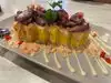 Came in for late lunch. First time having Peruvian food. Angie was really helpful with recommendations. Our favorite was this fluffy dessert with plums and caramel sauce.