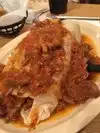 Classic Chile verde burrito super sized. This was at our super bowl party and as much as I like this place I couldn’t give it 5 stars or even 4 but I know the other food here and the individual plates are delicious so I gave it the 4 stars. For this large size burrito it is fill with Chile verde pork rice beans and guacamole. Everyone loved it but I was disappointed as the piece I cut had very little meat and mostly rice. The meat was not tender like I remembered. It is tasty but not 5 stars worthy. This is good for 4 or more people. At the super bowl we had 12 people and we got into half of it. So the value is good but I rather get my own personal one if you eat there. Just my tip. But if it’s your first time trying this place then it is worth trying it once. It’s the experience, right?