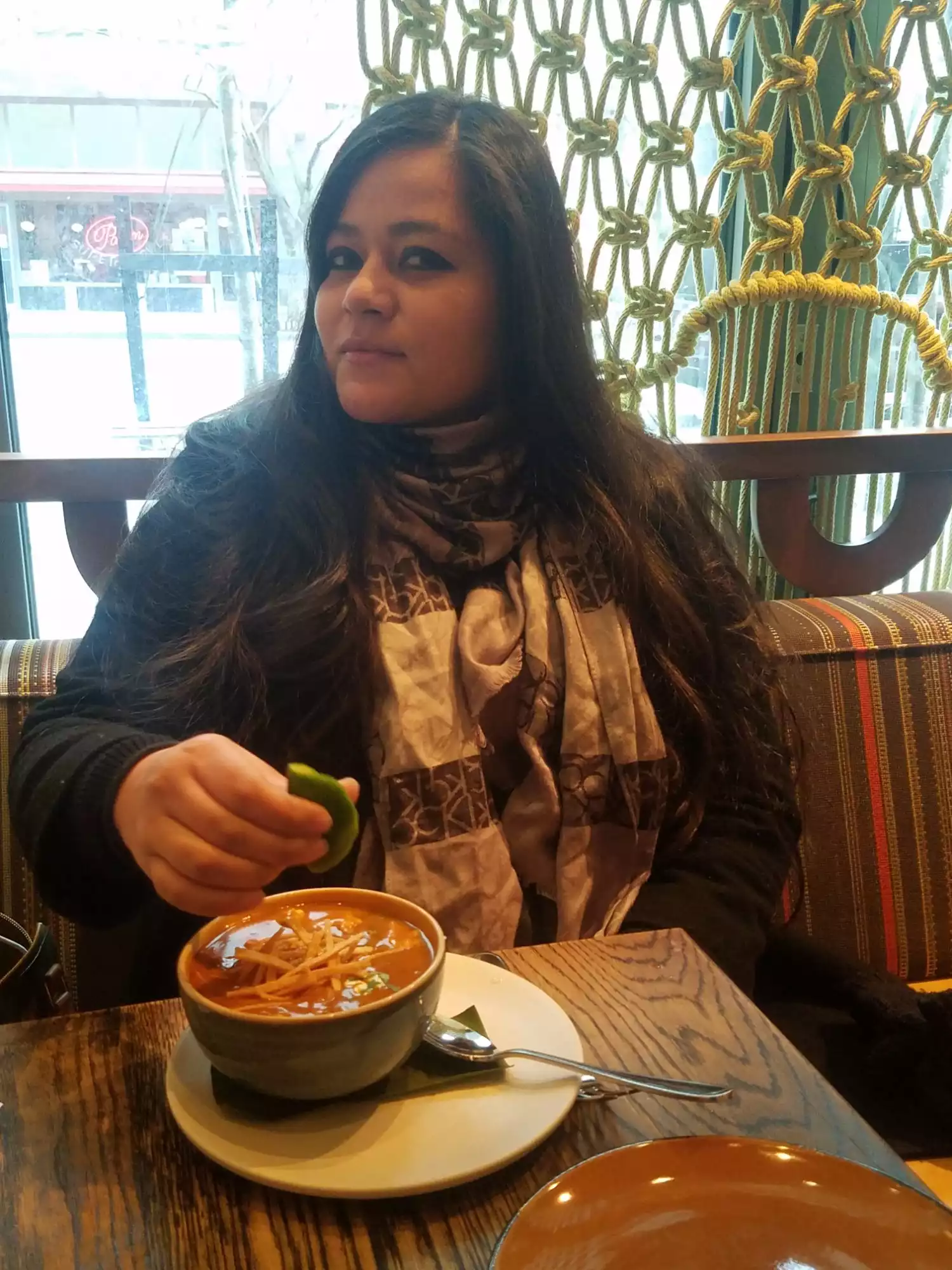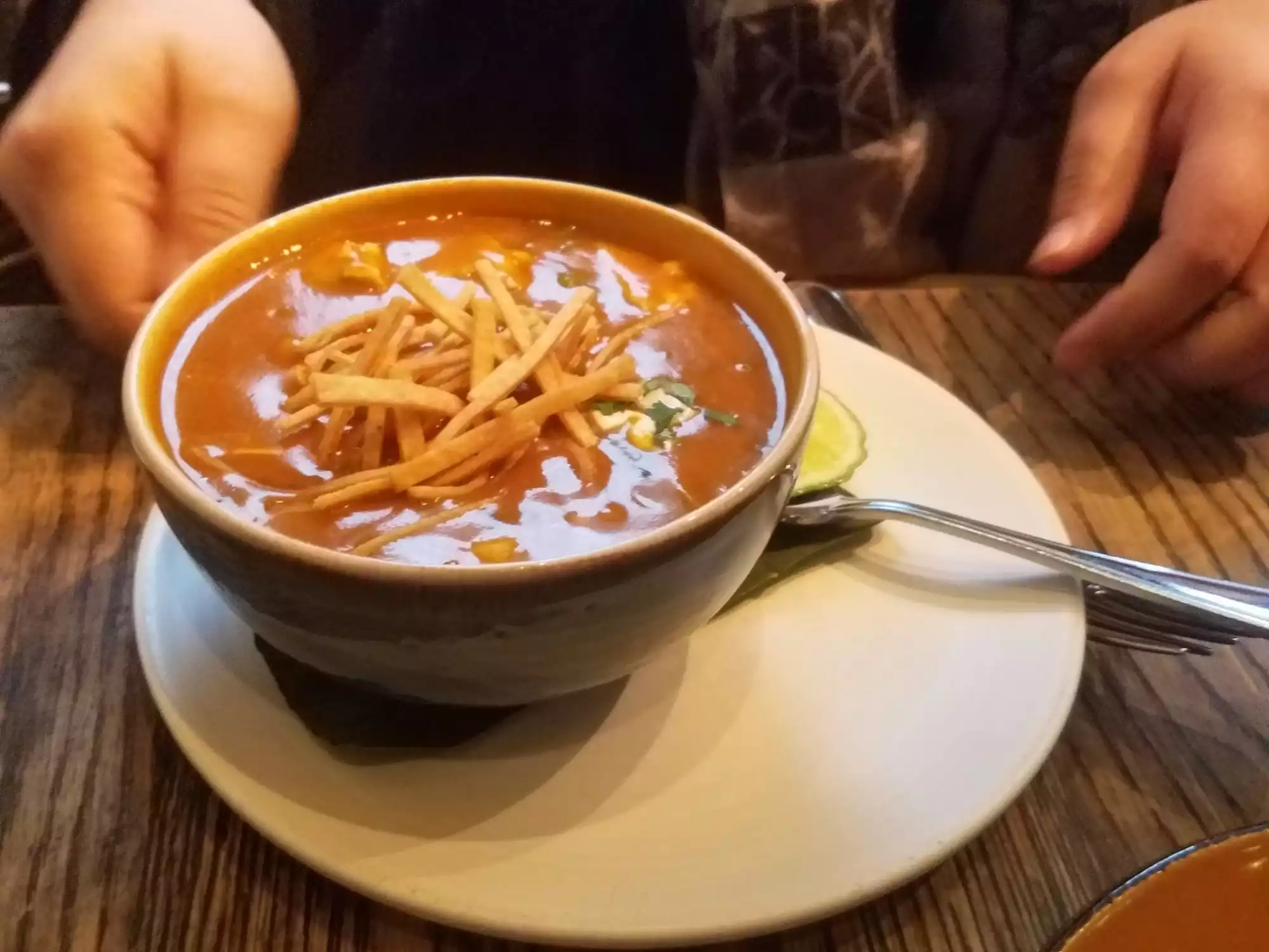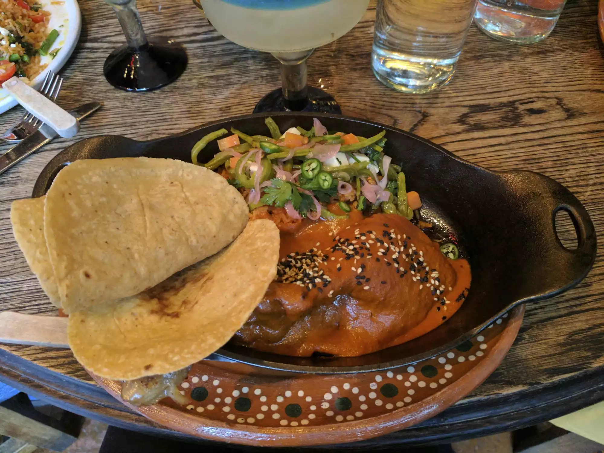 This restaurant is definitely a very place to spend an evening with friends or co-workers or take a date to. It has a large bar area where people drink and talk while standing, and there are areas where there are table, and you can have a dinner and even a quiet conversation. I have to say that this is the only restaurant where I saw a drink menu with quite a long list of Tequilas and Mezcals . And besides the drinks, the food menu looked very good, and the food itself tasted even better. Macho Nachos is a good choice to share as an appetizer, Duck Mole was excellent as a main course. Our waiter was very knowledgeable about the food, could explain how each dish was made, and was able to tell us what dishes were gluten-free, and which one were not. This was an excellent place that I highly recommend visiting.