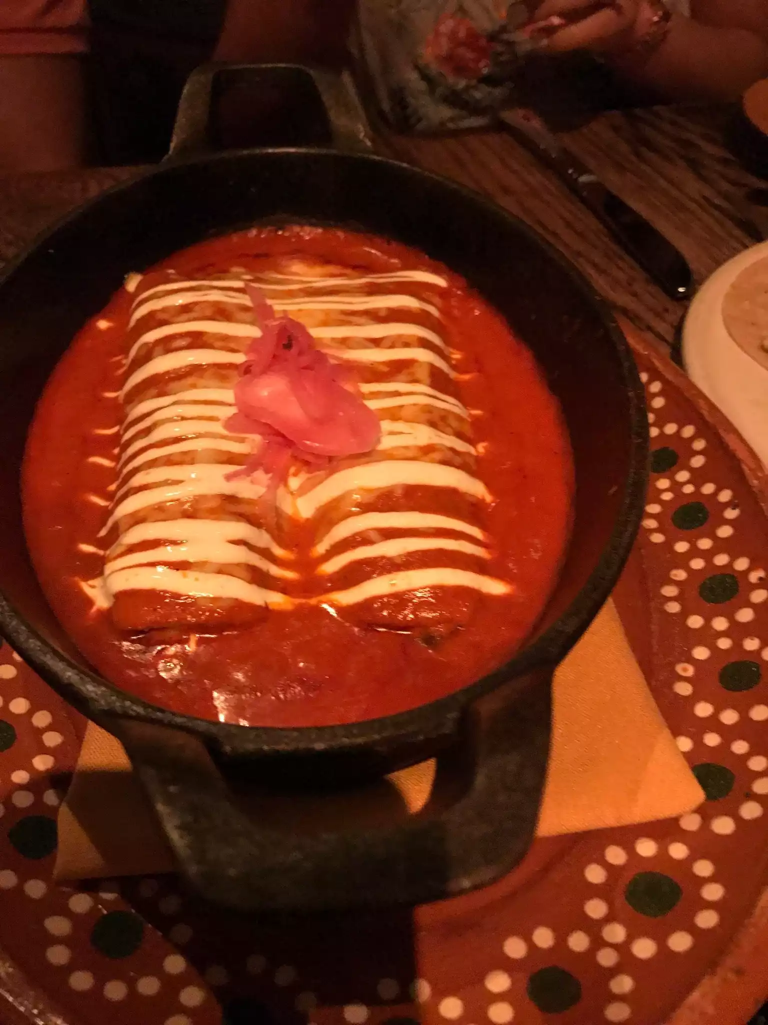 I’m a Texas girl so to find GOOD Mexican food outside of Texas/New Mexico..... The margaritas were good, table side guacamole was average. However, the steak tacos were absolutely amazing! Fork tender perfect chargrilled yum!!! The chicken enchiladas were different but not bad just not authentic. The chirps with chocolate sauce were addictive. If your craving Mexican food it do.