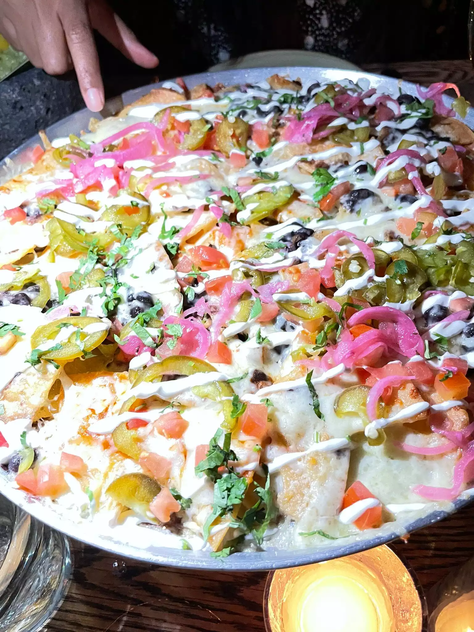 The nachos were out of the world ! Loved the cauliflower tacos and my husband loved his crab enchiladas! Good service and ambience ... was there on a Sunday night but the place was relatively busy