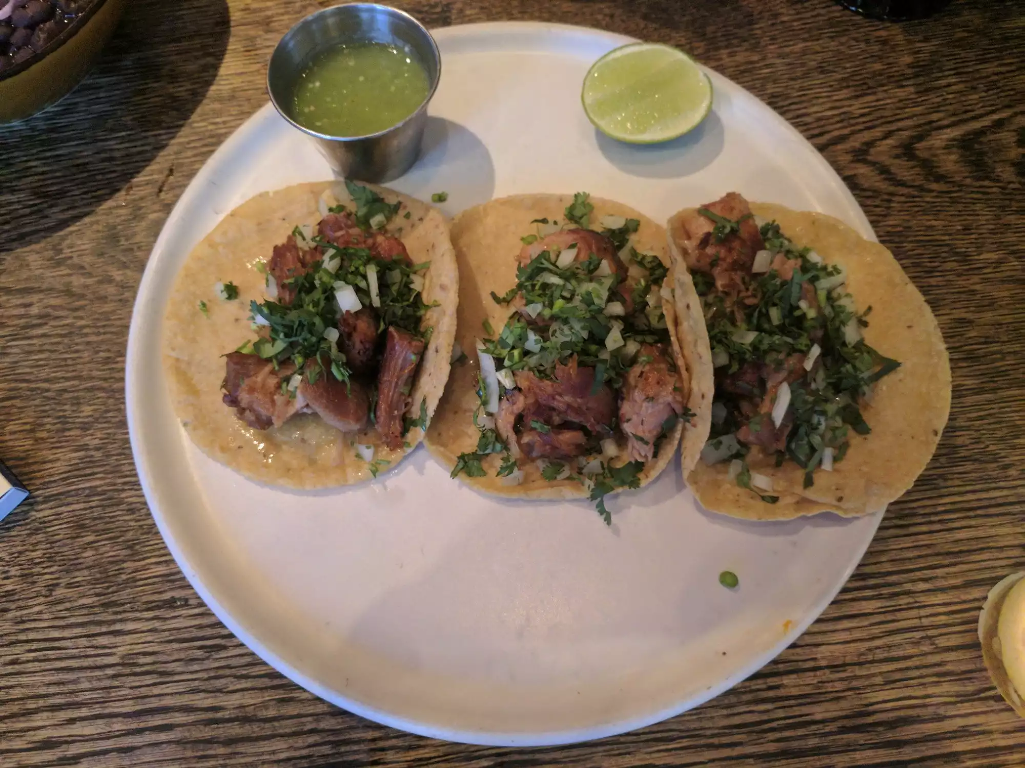 Great food. Decor is cozy with plenty of sitting. Our server Maria was a sweetheart, making recommendations on what to pick from dairy free options. We had the Tlayuda for appetizer (SO GOOD), mains was chicken tacos and tacos carnitas (good, but turns amazing with hot sauce; the hot sauce was fire!) and a side of really good vegetables. We left feeling stuffed. Definitely recommend.