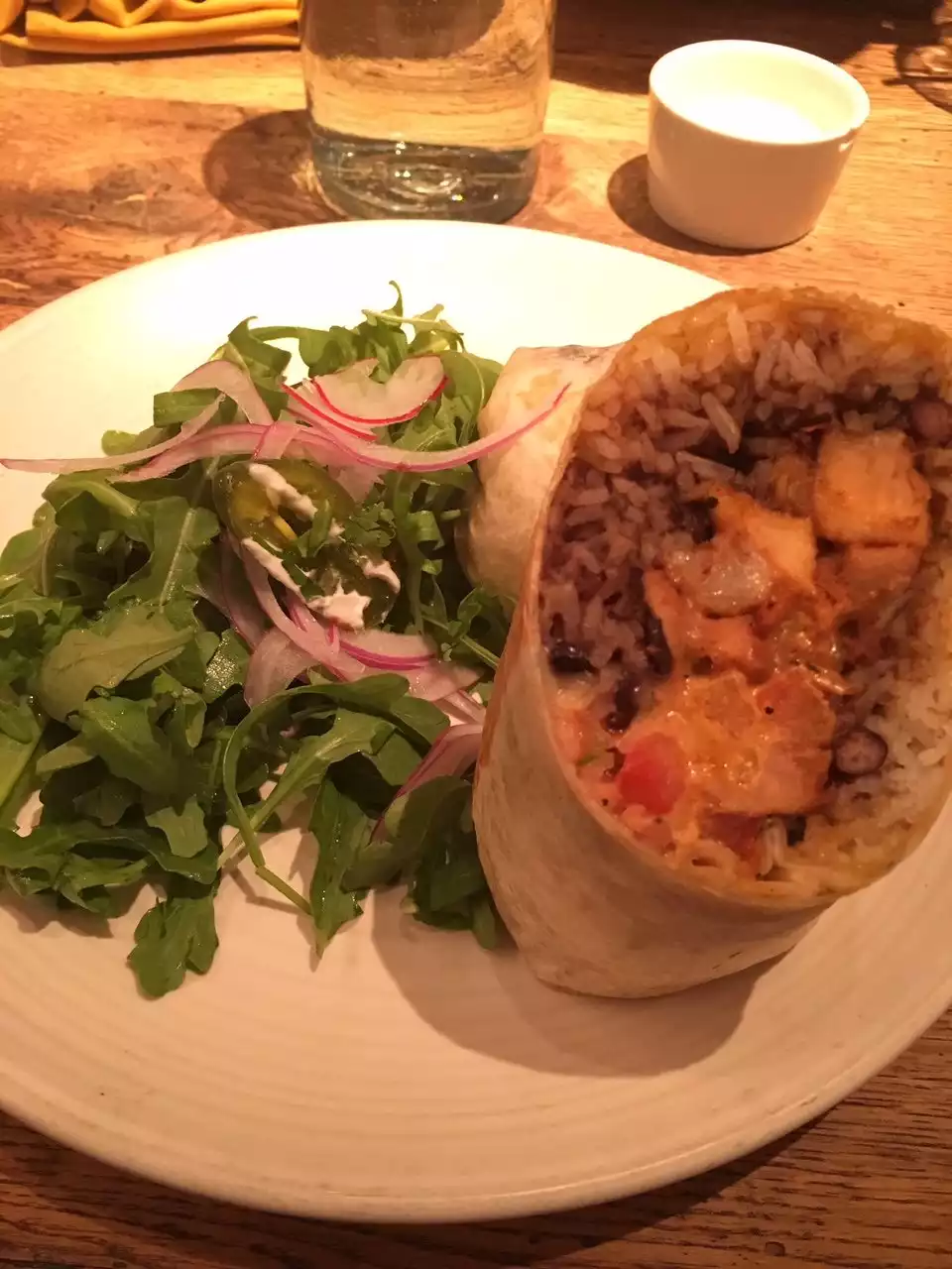 I ate dinner here and had a margarita which was fine and the crispy tacos which were again fine - nothing outstanding and I have had better. The atmosphere was buzzing and it is obviously a popular place. The staff were friendly enough too. The fish in the tacos looked quite dark and I just thought they felt a little bit cheap. The chips were nice and the salsa fine but not very hot. I probably would not go back.