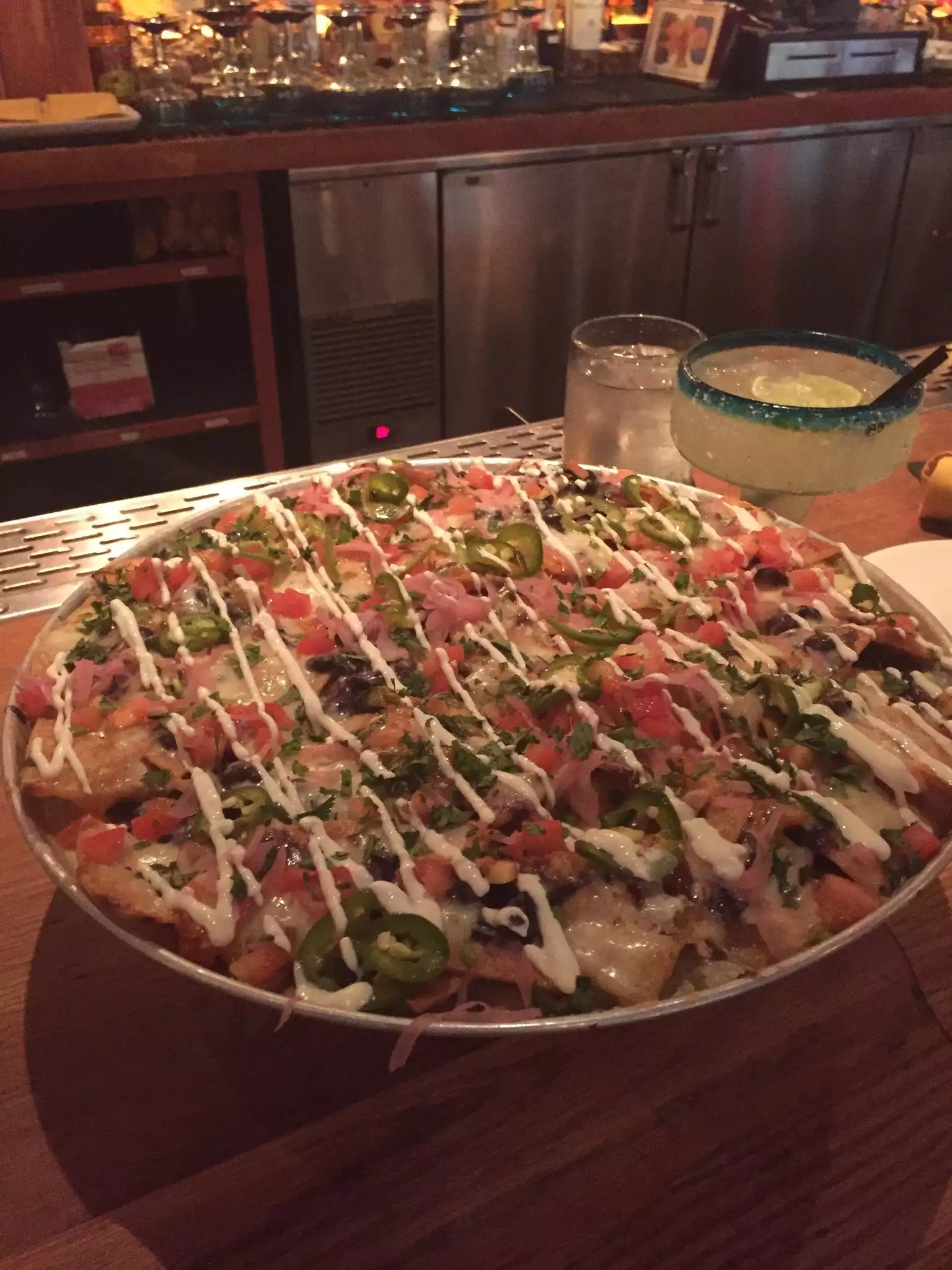 Don't be put off by the front bar scene & noise. Make your way to the rear areas where it's quieter. The Mexican food was actually special and far above average taste quality. Tried the nachos and they are both unique and large, if you get them with just two diners, be sure to maybe split one entree afterward! Atmosphere has energy and a various crowd of mostly after-work locals and some tourists. Not really any complaints. I'd definitely visit again. I'd order the nachos again!
