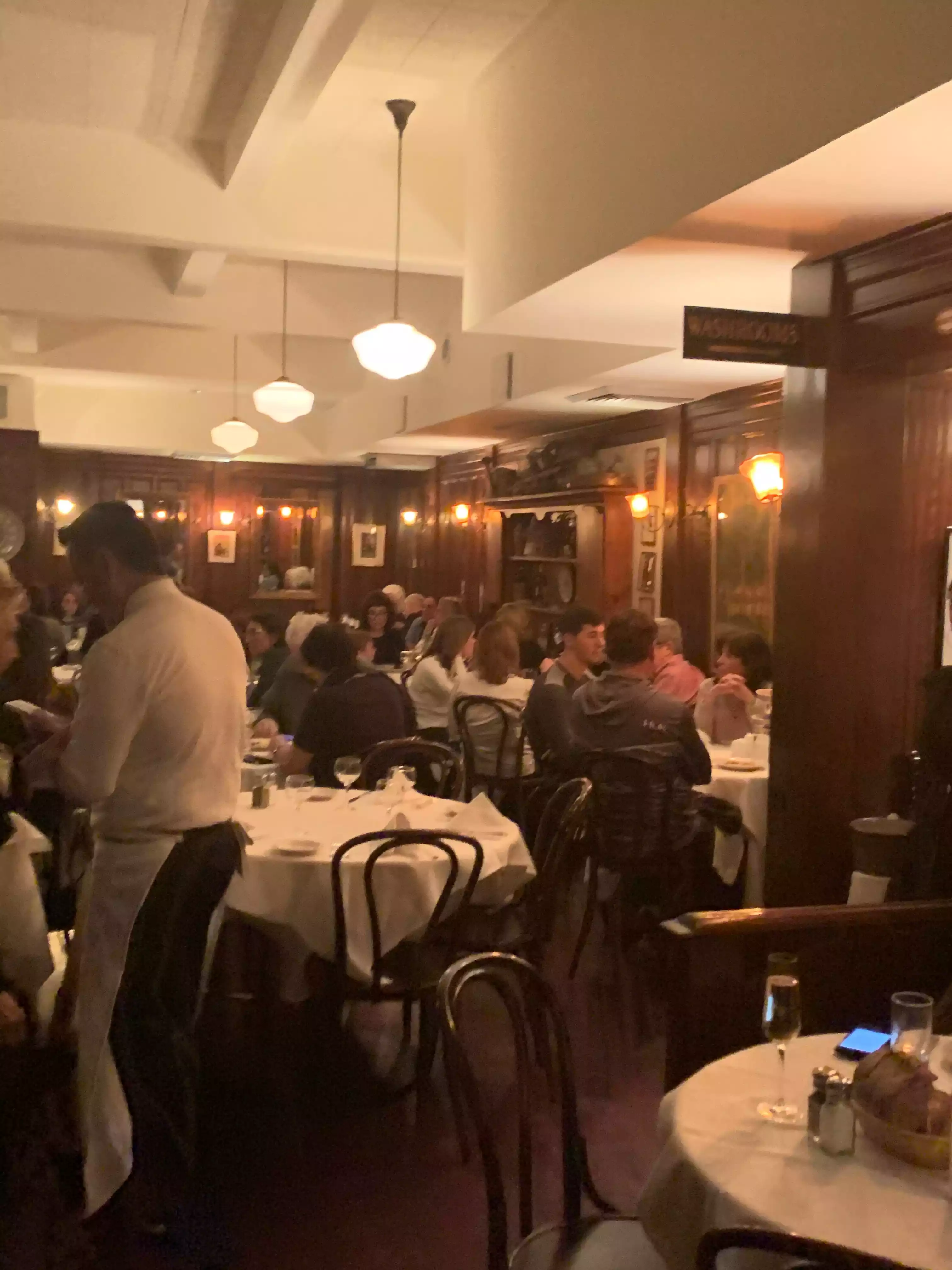 Very bad experience. Very noisy, and with poor service. Not told of specials that others were informed of, received a dirty water glass before asking to have it replaced, not offered opportunity to order wine until we had been seated for 15 minutes, overcharged for my main for an ingredient not in it, and charged $80 for 2 glasses of Montepulciano. When I asked the price (no menu for wines by the glass) I was told $24. When I pointed out that this did not compute, I was told the waiter had “mistakenly “ charged us for 3 glasses. Also, completely bogus. No apologies. We have been there before several times, and I had read that regulars get good service and the rest crap, but hadn’t experienced myself. Avoid like the plague!