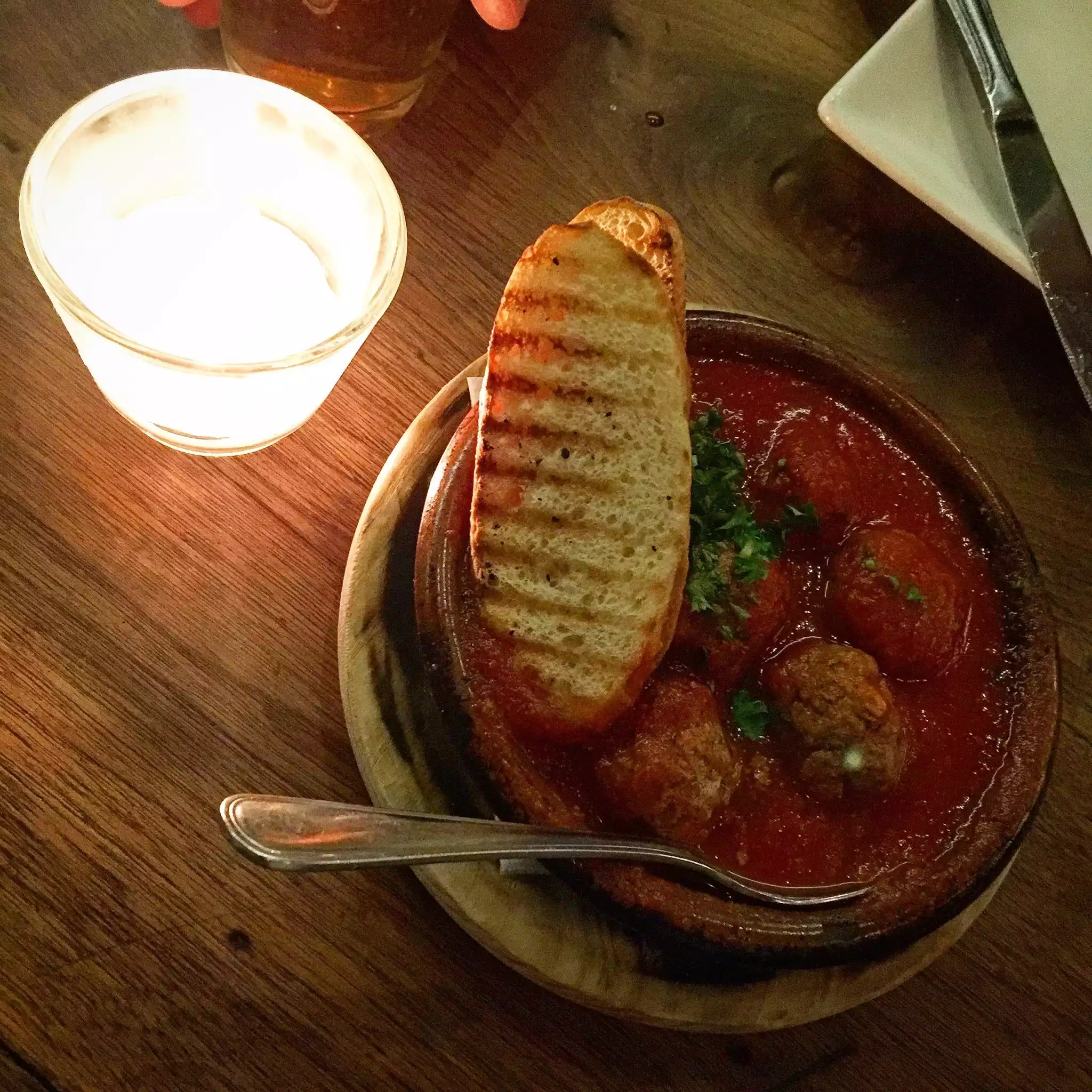 My friend and I enjoyed a dinner. The choices of small plates will satisfy the meat-eater and vegetarian. I enjoyed the octopus and Ella's salad. My friend enjoyed a burger and sangria (it was a hot day). Meatballs were so so, I would choose something else next time. Definitely an interesting menu, delicious food for all palates. (Just make sure you get a comfortable table when sitting outside.)