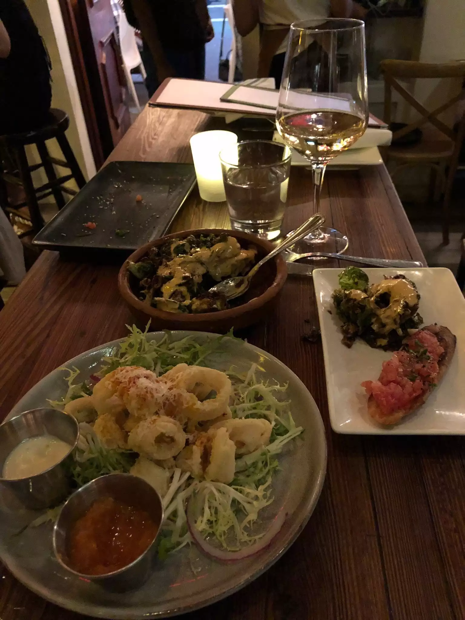 This place was around the corner from our hotel. It’s very cute inside. The staff were very nice. We ordered three tapas to share: Brussel sprouts, empanadas, and calamari. I’m not sure which I liked better because they were all amazing. We will be back!