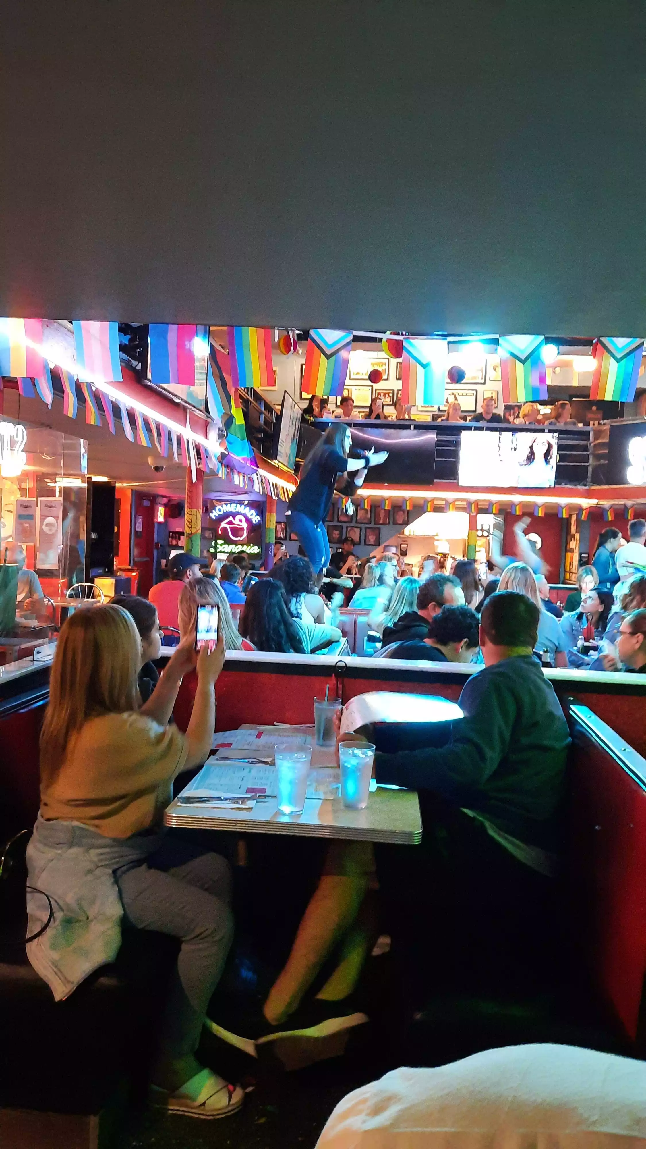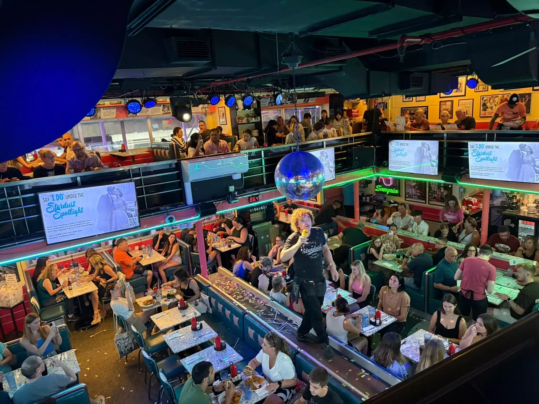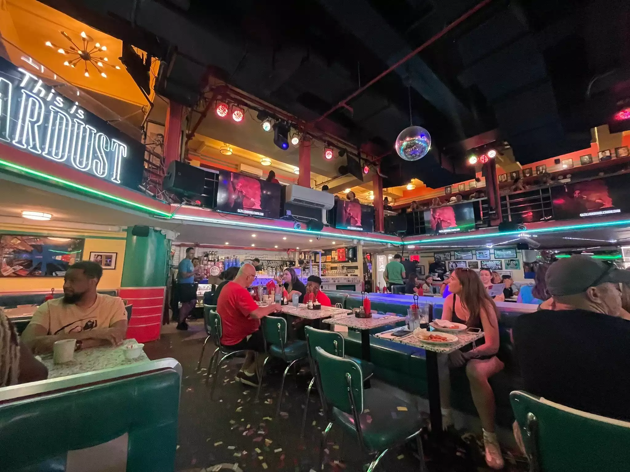 A really unusual place to spend an unforgettable evening and leave with stars full of eyes! Sometimes it takes patience to get in, but like three years ago, we were lucky to get a table after just 15 minutes waiting. If you are looking for a quiet restaurant, this is clearly not the place. However, if you want to live an extraordinary experience, surrounded by real artists who are also your servers, then don’t hesitate a second! Mood is crazy, decibels high – as is the incredible talent of singers who perform songs from all eras. Customers willingly participate, sing, clap their hands... and we have not been asked to do the same! On the kitchen side, it is a typical American food, with generous portions. It’s not gastronomy, but after a long day of walking, it’s perfectly acceptable and tasty. A huge bravo to the artists for their energy and talent. Ellen’s Stardust Diner is the perfect place for a totally crazy and joyful evening!