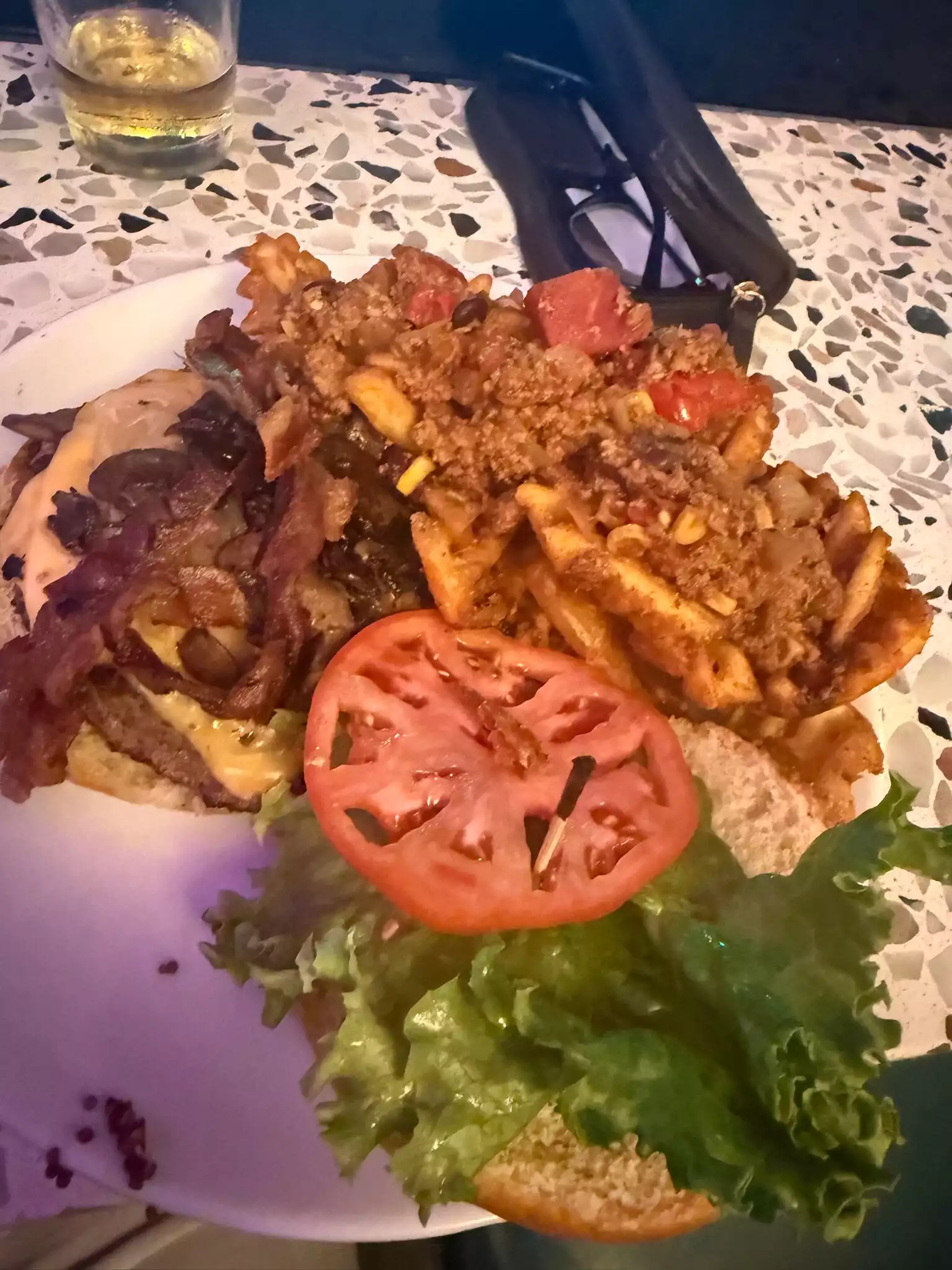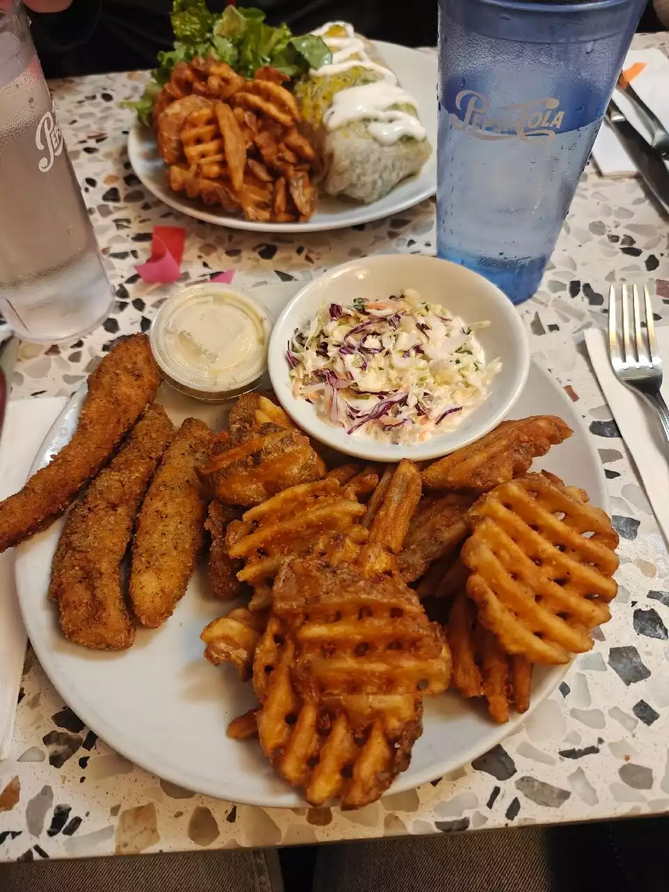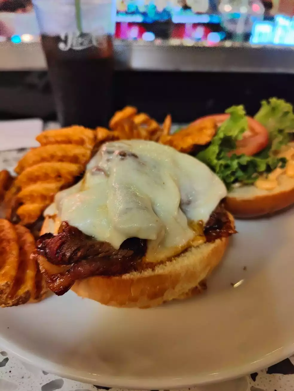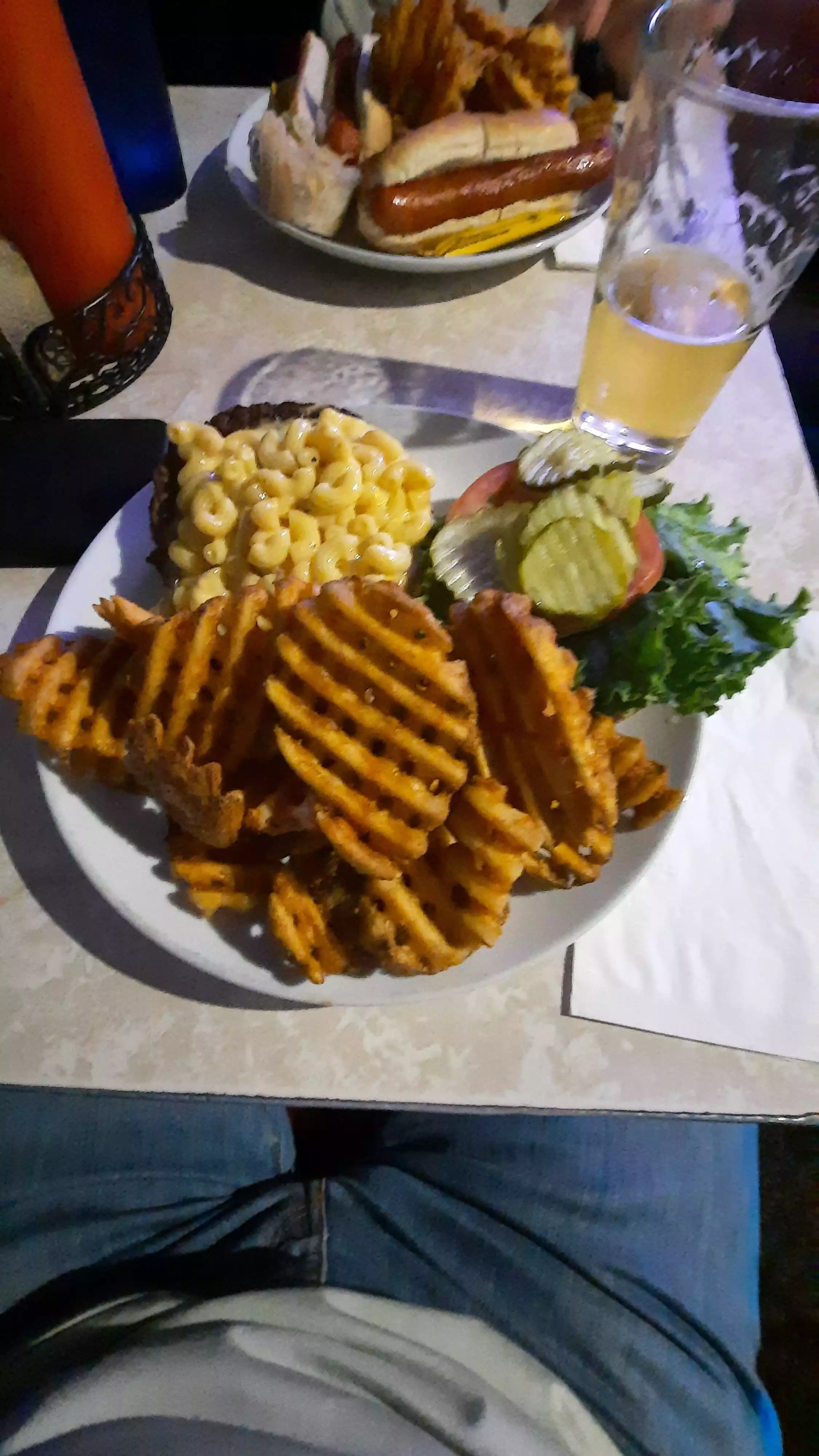 Great food and the servings are huge! I couldn’t finish my burger. This place is so fun and everyone is so talented!