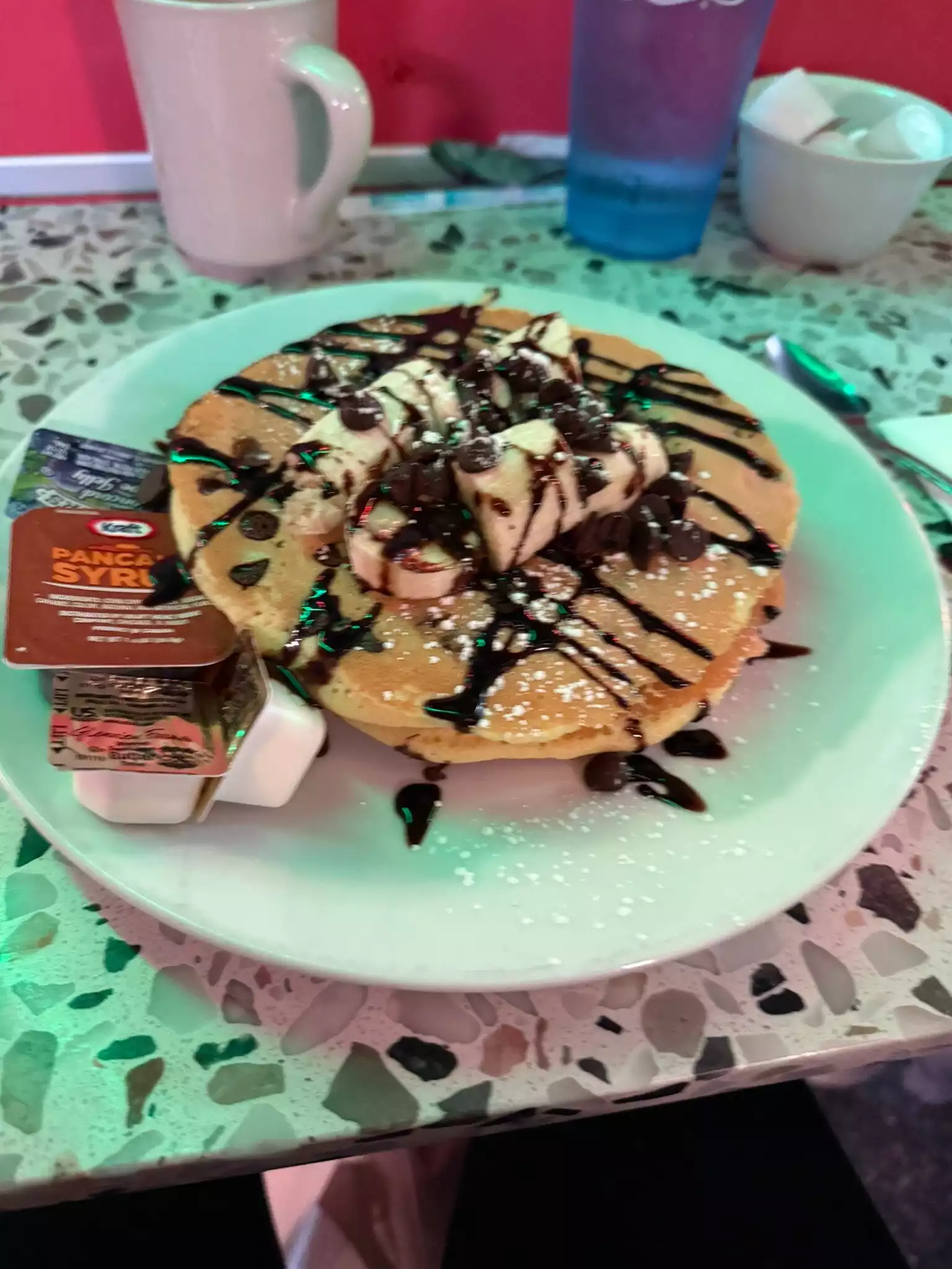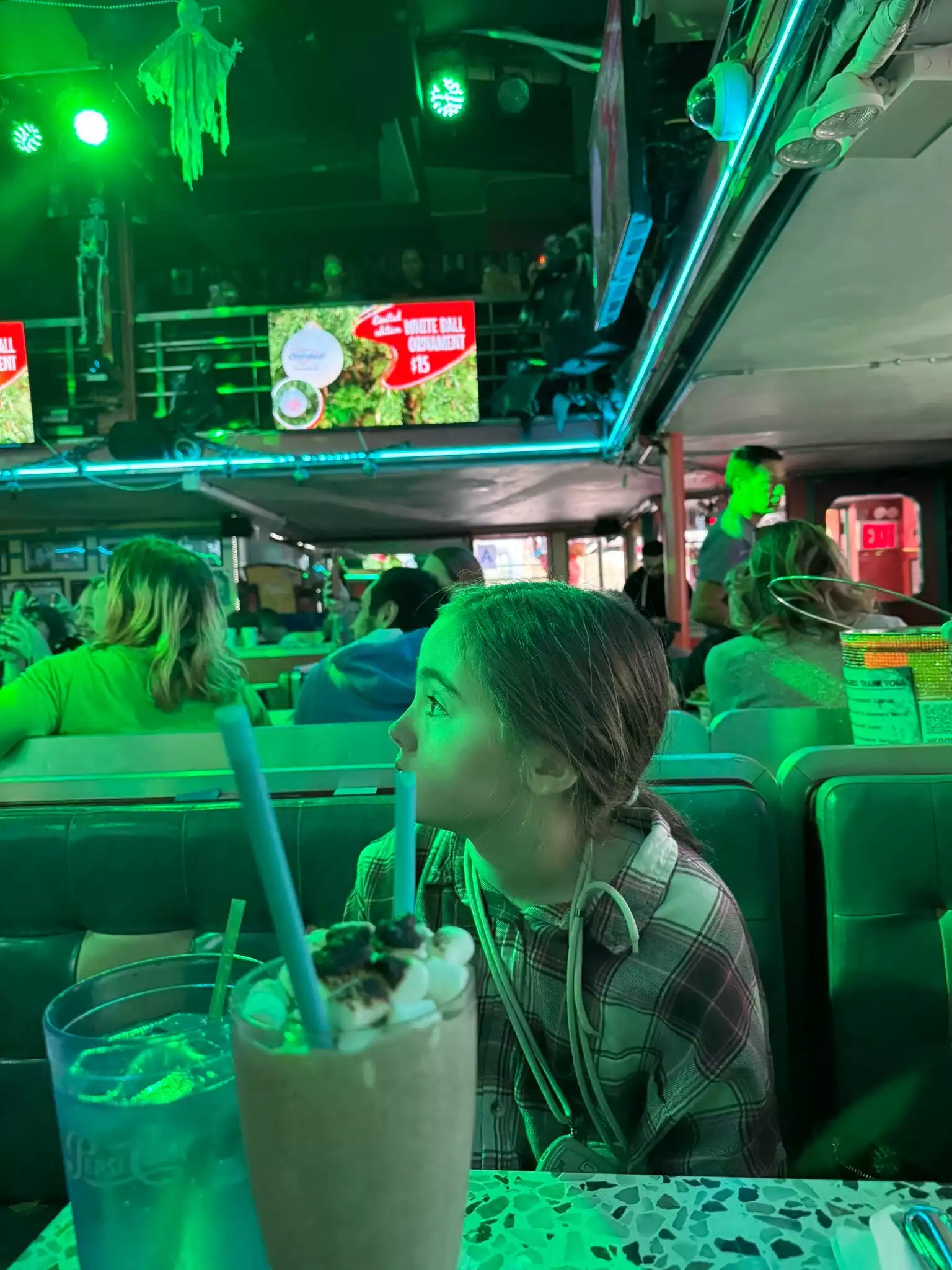 A lovely diner traditional American look with a twist! Singing waiters and waitresses lovely wee place very entertaining and not too expensive