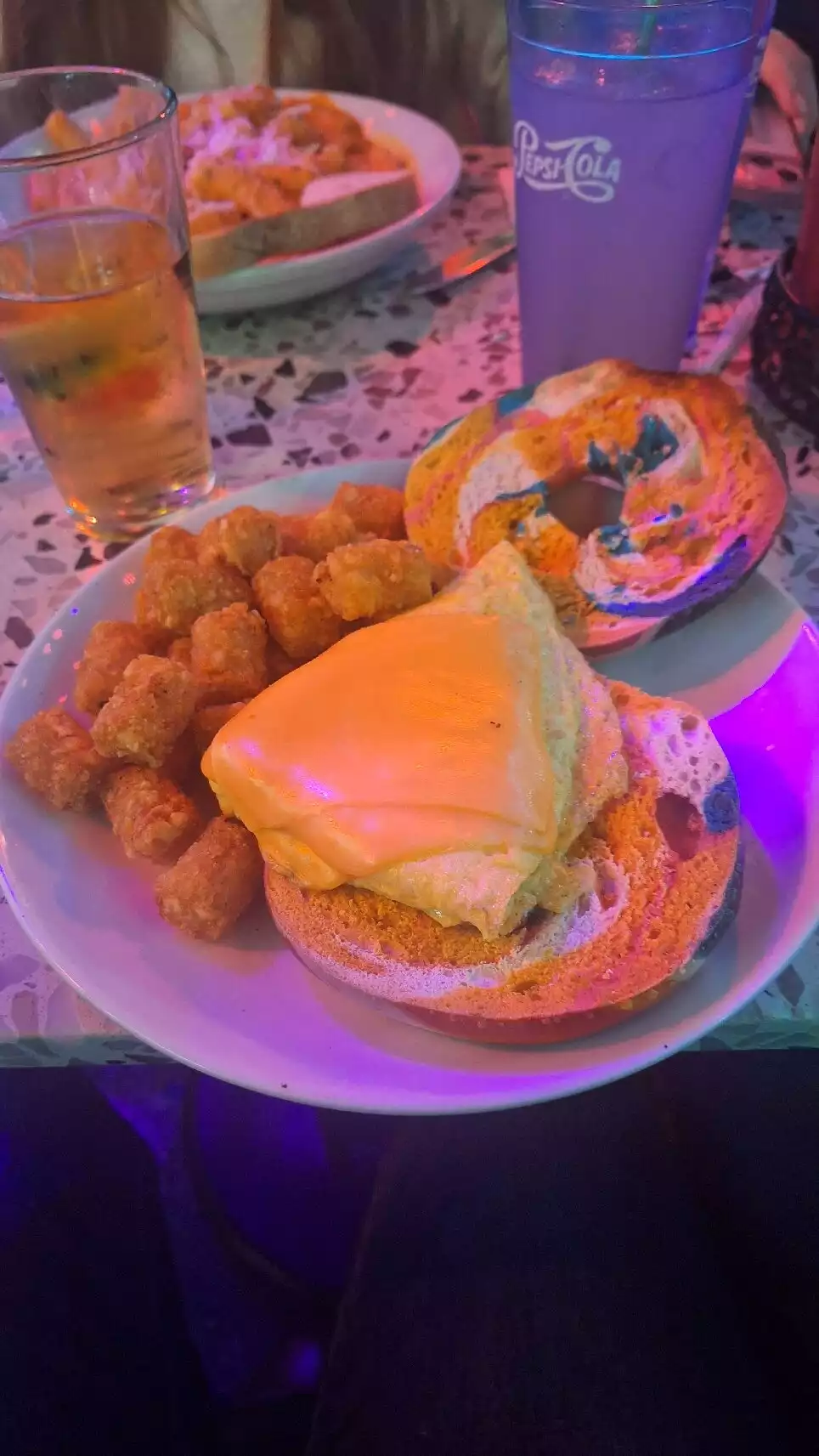 Great atmosphere We dined here for breakfast and we had a great time. The food was excellent and we thoroughly enjoyed the experience! The eggs were cooked to perfection and the tater tots were amazing. The staff were very attentive despite being on duty to break into song at a moments notice. We arrived at 8:15 AM and we had to wait in line but the queue moved pretty quickly and it was definitely worth the wait. I was sceptical as to whether my eldest daughter would like this but she loved it so much it was the highlight of her holiday to NYC. This is a must do dining experience!