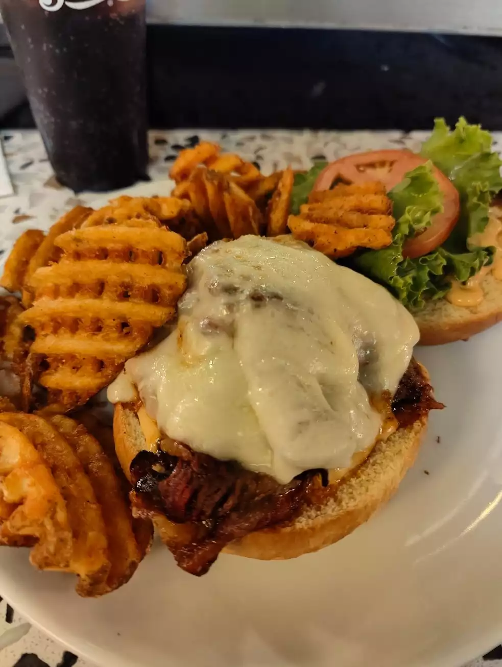 If you only had one day to do lunch in the city and wanted to also have a little bit of a Broadway experience and just a good time with great food, this place is it❣️ The entire wait staff can belt out a tune and it is worth the wait if there is a line. They sang songs from Broadway shows and popular genres of music. Thanks to my cousin we had a seat right along the little runway that is in the middle of the restaurant. There is memorabilia from eras gone by of various celebrities hanging on the walls. The meal we had was great as well. They serve generous portions and we did not leave still hungry. I had the cheesesteak sandwich which was served with waffle fries and my cousin had a burger and waffle fries. Both of us were satisfied with our choices. My only disappointment was, I wanted to try one of their signature milkshakes however they don’t do plant based milks and so I wasn’t able to try one. 😕 Overall, I HIGHLY RECOMMEND Ellen’s Stardust❣️🥰