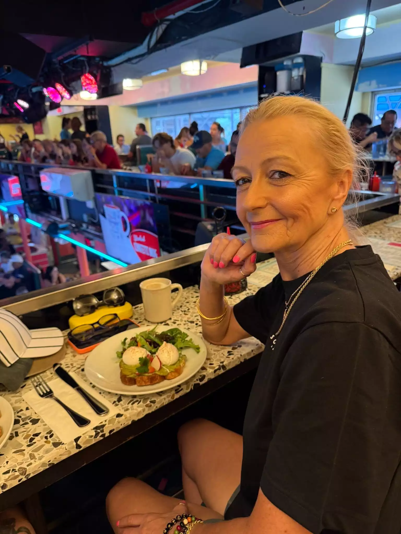 Ellen's Stardust Diner had been recommended to us and as it was a short walk from.our hotel, we decided to give it a go! Jet lagged after flying in from the UK, we were up with the lark and got to the diner at 7.30am. The ground floor was pretty much full so we were seated upstairs. We had a great view of everything going on both upstairs and downstairs. The singing waiters and waitresses were brilliant, especially the guys whose voices were really strong. The MC was a bit pushy for donations from customers for the waiting on staff to attend performing arts classes. Nonetheless, he was very funny and added to the welcoming atmosphere. We had an omelette and poached eggs on toast. The waitress was friendly and helpful with the menu. She saved me about 10 dollars which wlshe didn't have to do. Great decor and it really did feel like an American diner! We may well be back!