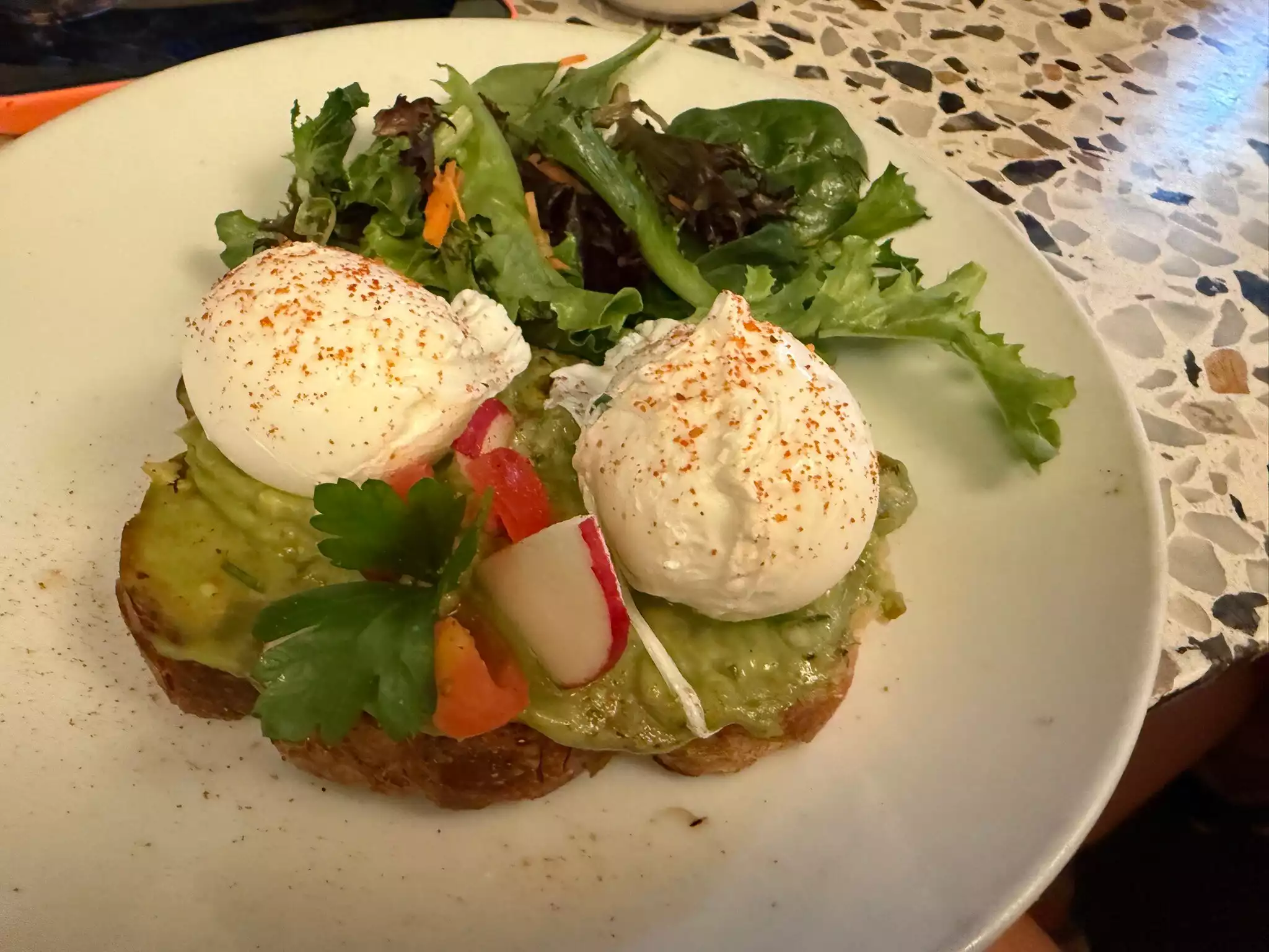 Fantastic breakfast had Food excellent and coffee delicious Was so much fun and a brilliant vibrant start to the day. Worth the queue to get in Highly recommended