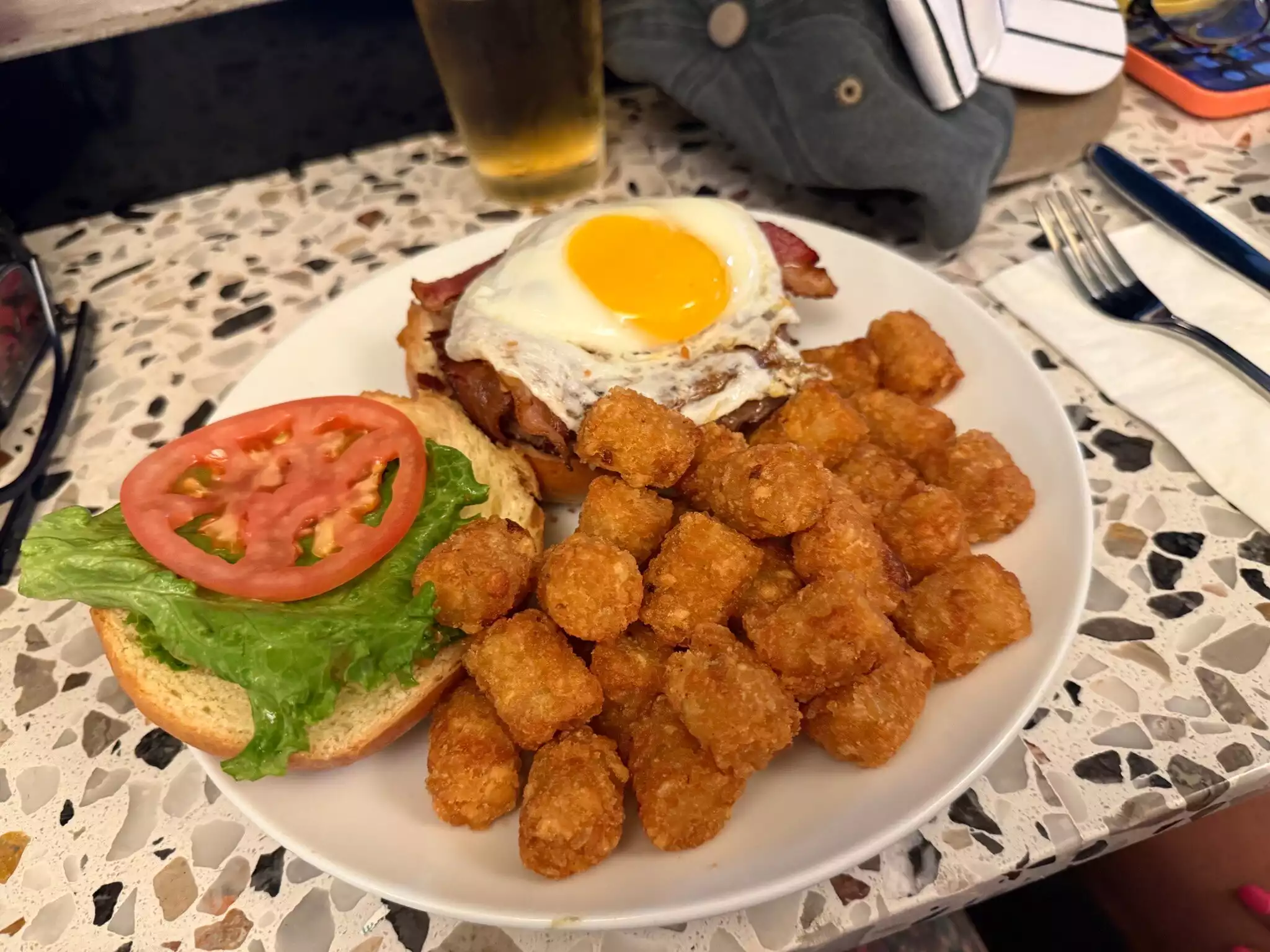 Went after recommended, turned up at 9am didn’t have to queue - full downstairs Given a table upstairs asked to move as seated crammed between tables. Server was nice, menu plentiful. Service slow. Fly in drink - replaced and was not charged. We had omelette, pancakes, bacon & eggs and French toast. Good sized portion. Tata tots pure grease unfortunately. Food was okay. Place its self seemed grimy, toilets not clean and just a bit run down. Singers good, although very loud so expect that if going, we couldn’t hear each other over it. We received a filthy look after not putting into the singers contribution bucket it was an expose ration rather than a choice which is what was made out. Was made to feel uncomfortable. The breakfast was $120 for 4 of us and a 20% tip was automatically added - we changed it to 10% as not impressed with the place, attitudes and cleanliness. Server was lovely. Over rated would not recommend. Great as a novelty but not worth the price.