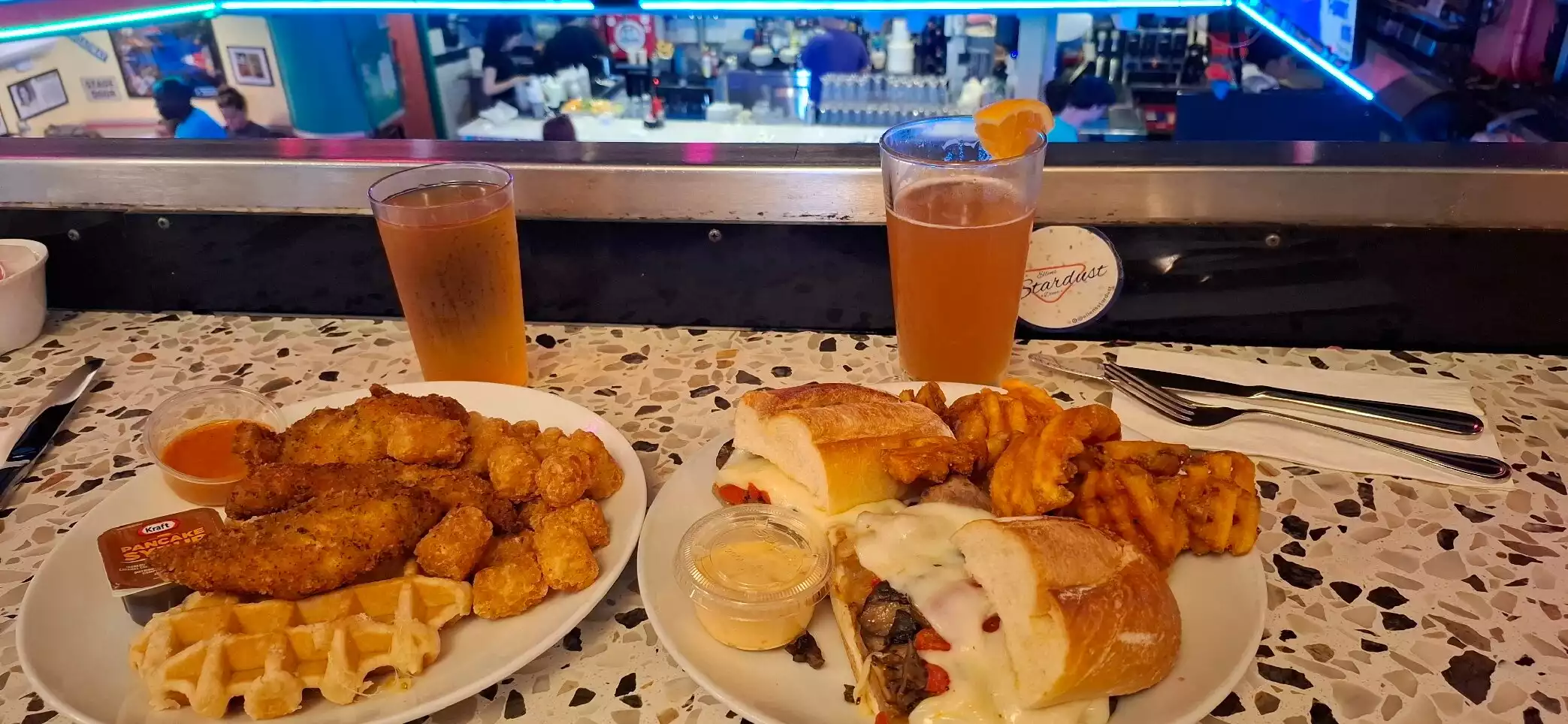 What a fun restaurant! Service was just ok, food was fine. But a great unique experience. I was excited they had a dairy free milk shake. We arrived at 10:45 on a Thursday and waited only 15 minutes for a party of 2.