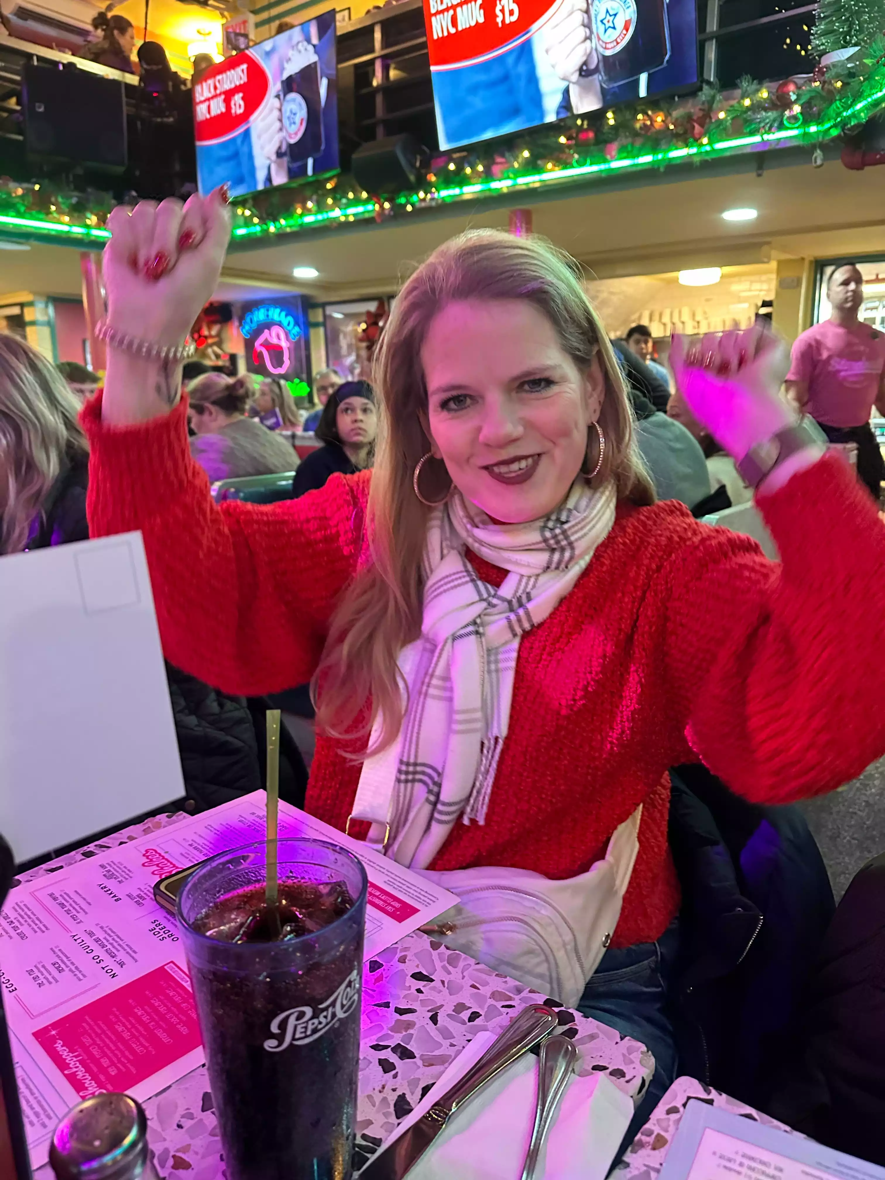 There are no shortage of amazing restaurants in NYC. We picked this one based off of good reviews and it was unique as the wait staff sings as they wait tables. It was near Radio City Music Hall which also was great as we stopped here for lunch right before we saw the Rocketts. They don't take reservations so we just joined the line. We waited almost an hour in line which wasn't unusual for a hot lunch spot. Lots of places take reservations but this placed doesn't. This place was fun and menu was great. Lots of good choices for lunch or breakfast. I had chicken tenders and fries which were very good. I tried the chocolate soda which was just ok and definitely not worth the $8 or whatever ridiculous price they charged. The staff was friendly and food came out quick which was great because if it hadn't we would have missed our show. Prices are high just like anywhere else but for NY fairly moderate. I think it was around $40 a person and they include tip in that.
