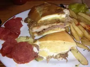 Absolutely delicious food! I had the dip sandwich and my friend had the Cuban. So tender and juicy. Varied menu to suit everyone!
