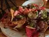 My son and I popped in out of the rain to warm up with a plate of nachos - and two cold beers. The beer choices were great, including a taster of one in question prior to ordering. The nachos were very good (real cheese, not sauce) and fit our needs very good. Nice assortment of burgers - we'll be back. Helpful and efficient wait staff too.
