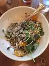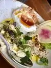 Bright, airy space that can get too loud even when not fully crowded. The food is decent, very fresh, but nothing special. Most of what we had was on the bland side: Bhel hummus (overwhelmed by large chunks of onion), octopus (served w/ tasteless mashed potatoes), corn farro (too gluey). The server was nice but very inattentive, and not knowledgeable. The "rising cost" surcharge is not appreciated.