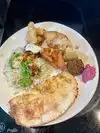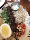 Our group of 7 really enjoyed the flavorful food here. We started with two appetizer combo plates which were quite small tastes of each of three spreads, like their various hummus, babbaganoush and a cheese based spread. They were all so gala or full that we didn’t need a lot to feel satisfied. The pita was warm and seasoned. I shared an order of risotto which our waiter recommended. It was delicious but so rich you wouldn’t eat this alone. We also had the chicken kebobs, which were good. Our group ordered a big variety and everyone was happy with their selections.