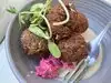 First time here. Loved it! Green falafel with beet tzatziki - wonderful and flavorful. Lamb and beef kefta - rich and tasty. The dining room is smallish but just right - very friendly oriented and intimate. I arrived about 5:30ish and by 6:00 the dining room was almost full. A great place for a casual dinner. The staff is very friendly which enhances the food experience. So many dishes to try, I’ll be back.