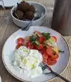 Very good food and service. The overall environment very pleasant. Food: hummus (not very good) I had many hummus much better and more authentic; Octopus: very good Falafel: excellent - must Kafta: excellent Olives and feta: excellent Chicken (kids menu): served with rice excellent Eggplant: good Overall very good food. For desert we ordered frozen yogurt and was delicious