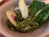 We were 5 people and ordered a variety of food to share. The best pita bread I have ever had and the roasted eggplant spread was just delicious. I also ordered the celery root soup and it could have been better. It arrived tepid but the waiter took it back and heated it.....a bit. Flavor was forgettable. Atmosphere is busy and noisy with no private booths. We were there for lunch on a Tuesday and it was lively. The service was ok. Prices seemed typical for the neighborhood. i will happily go back for the pita and the eggplant.