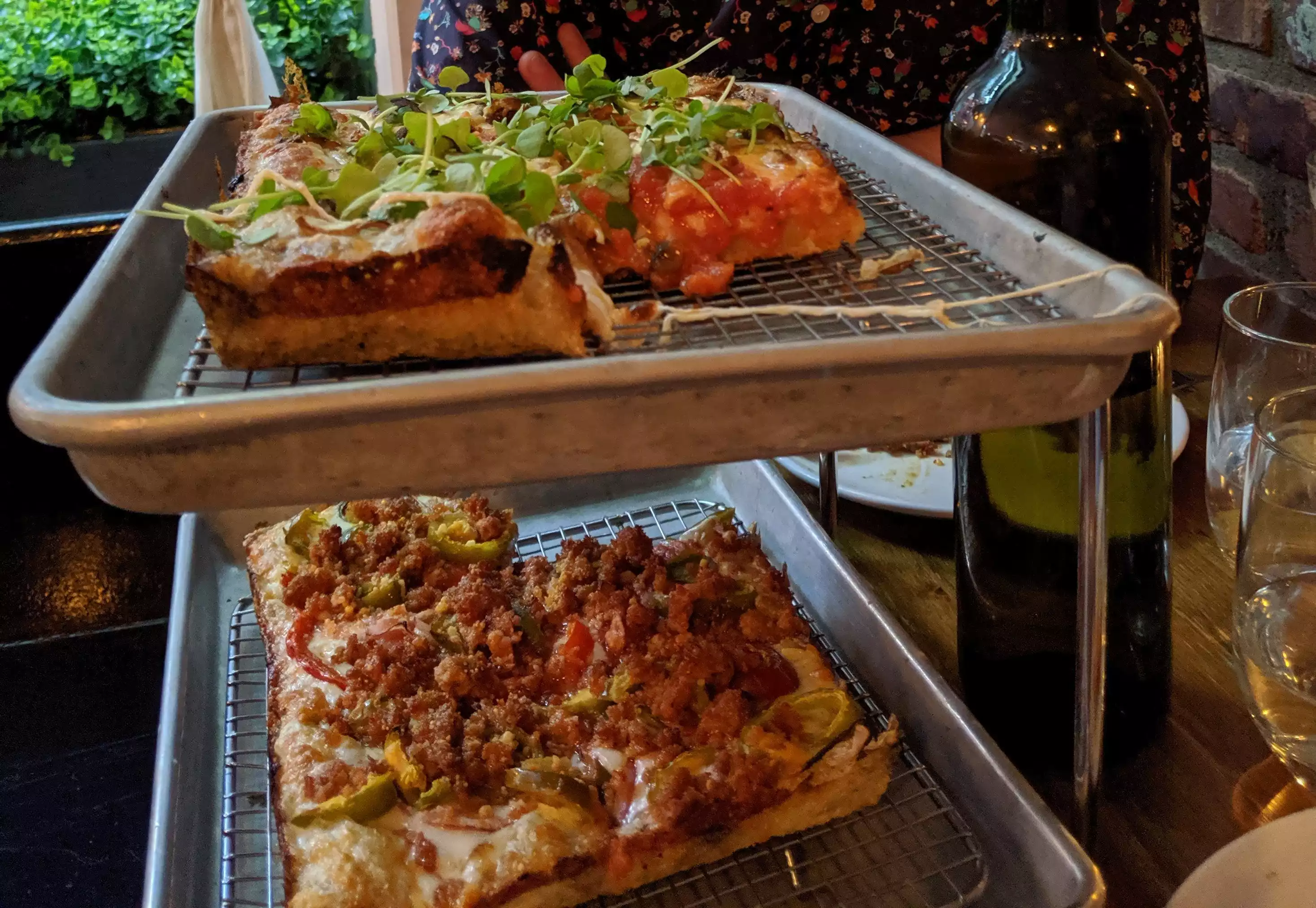 I made a reservation for dinner here after trying their Brooklyn location twice. We love the pizza there, especially the Colony. Unfortunately I didn't realize this was only Detroit style pizza and you can't get the thin crust they serve in Brooklyn. For that reason, I wasn't a big fan this time. However, the location is great and the restaurant itself charming. They seated us in their lower basement level which I didn't care for, I'd request the upstairs if I was making a reservation again. Overall recommend the Brooklyn restaurant.