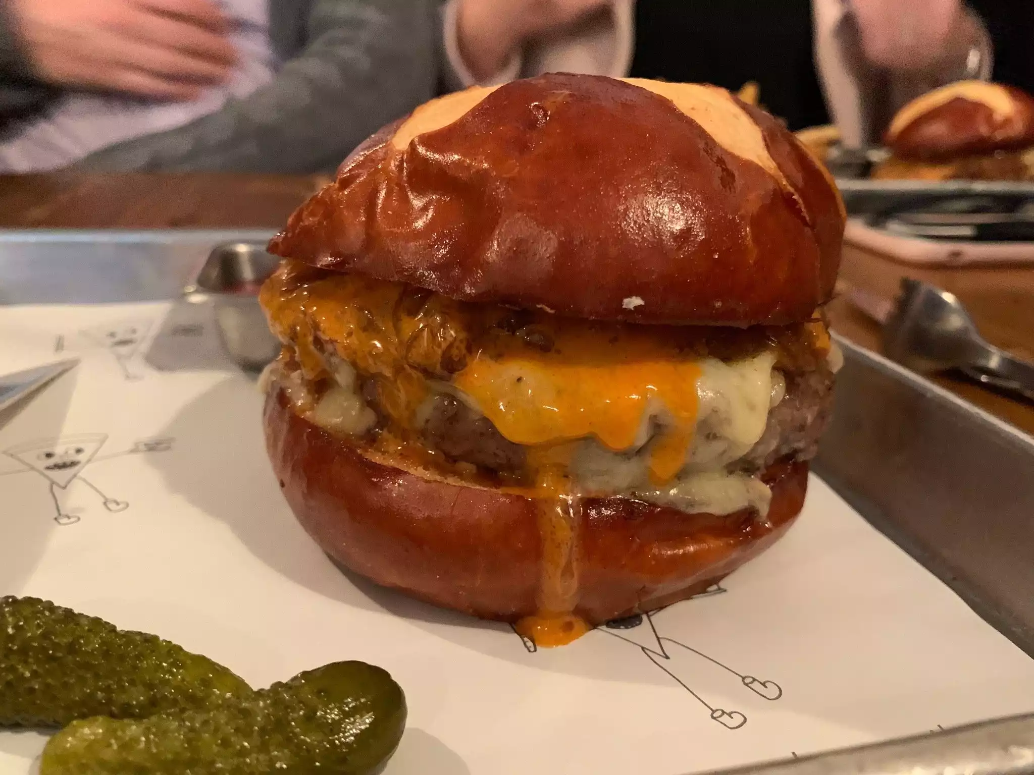 Was taken to dinner by my urban foodie sons and what an experience. This place is famous for its "burger" which is one of the best tasting meals you can find. The beer selection complemented the burger- which is smothered in cheese on a flavorful bun. Yummy to the max. We also dined on their signature pizza which was as good as it gets. Simply wonderful meal.