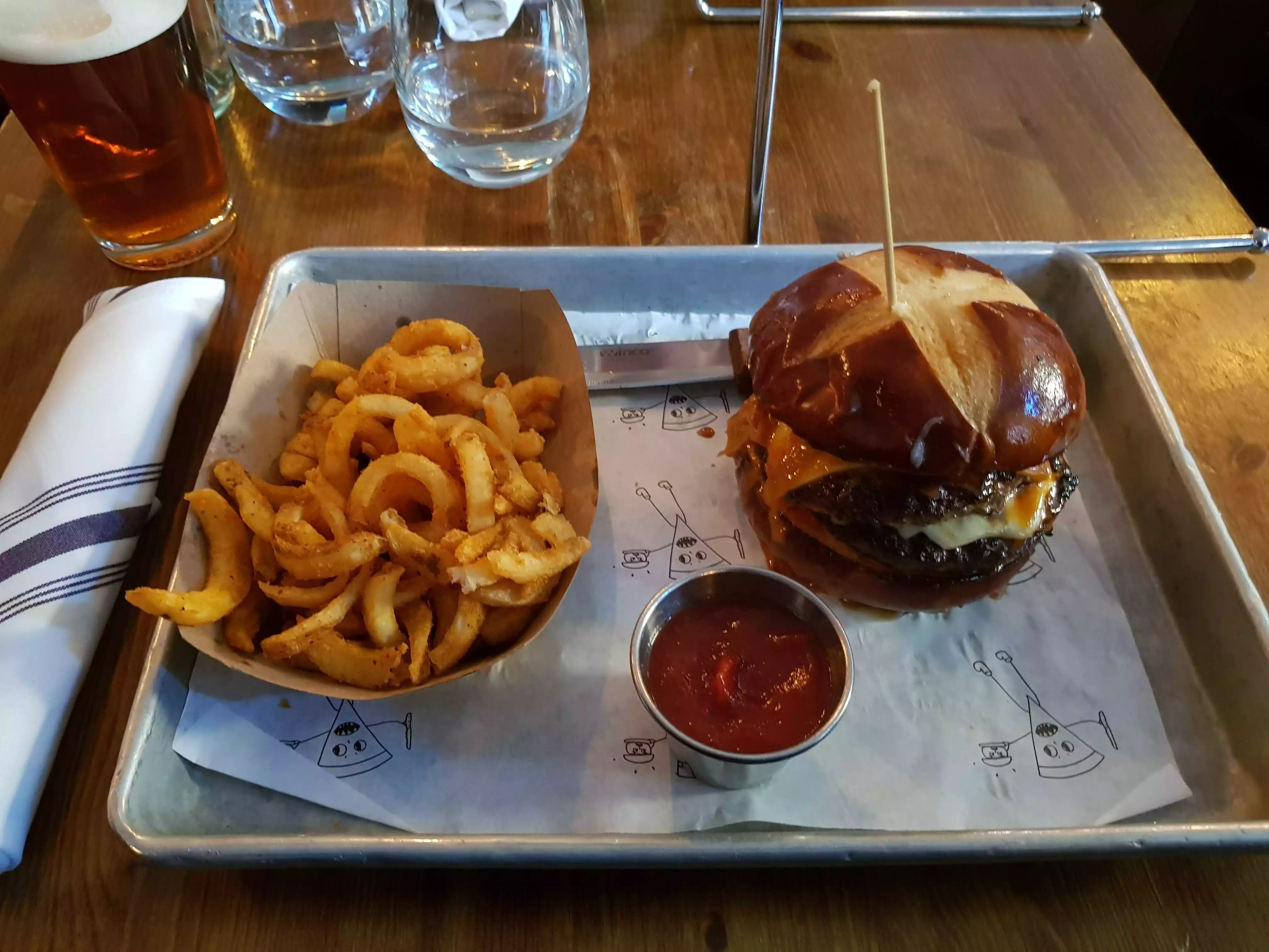 The Emmy burger - side of Crowler fries - glass of Pilsner. Great combo, everything tasted incredible, best burger I've had. Will definitely be back. Great service too