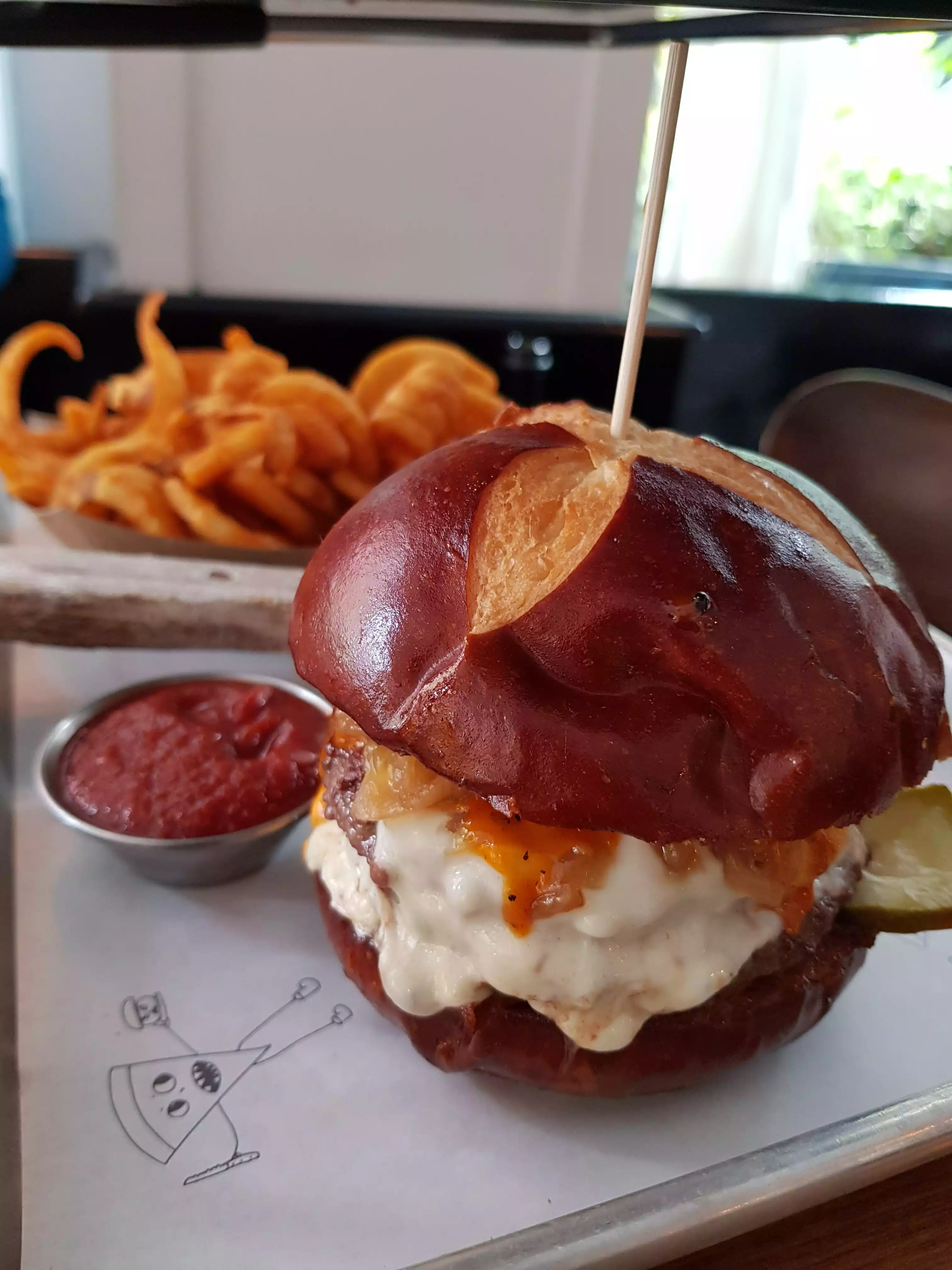 The burger was one of the best we had in a very long time. The pretzel bun was soft and added something special to the overall taste. We loved the pizzas, different to what we’re used to in UK however delicious! Loved the shredded sprout salad as a starter. Outstanding customer service!