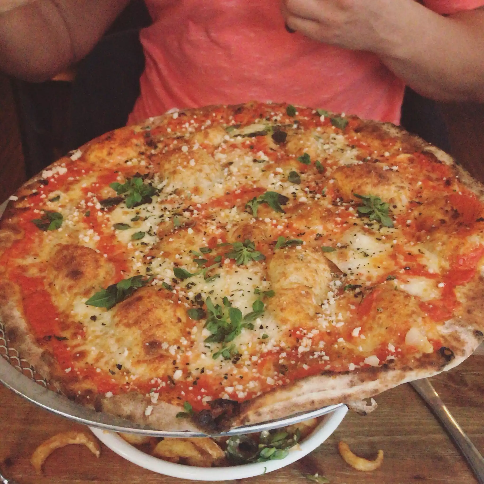 "I only like thin crust pizza." WRONG! In a city filled with amazing pizza places, this one stands out. It really is amazing. The "Emily" with pistachio and honey? You could eat it every day. The crust is thicker l but not dense. It is light and fluffy. Pizza size is perfect for 2 people. Service is excellent even in a Pandemic. This is a place to bring out of towners for an experience they won't get anywhere else. Very cool vibe in a neat part of town. Go, you won't be sorry