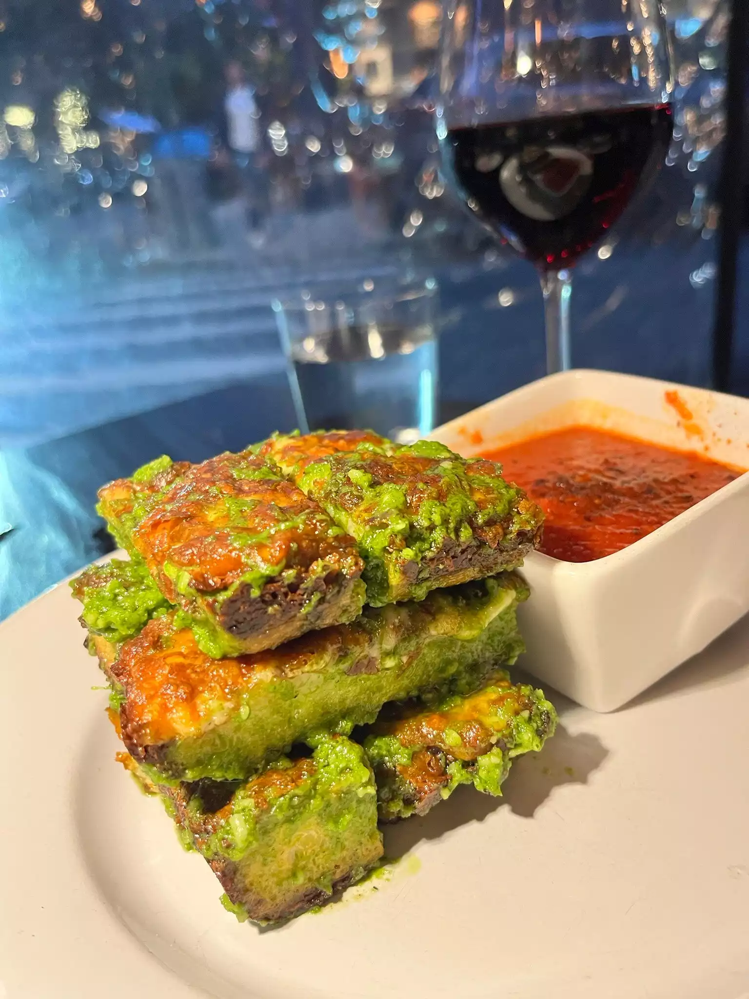 Great for an afternoon lunch with someone special. This romantic, authentic pizza restaurant offers a modern menu with fantastic sides. We split the cauliflower starter plate and the vegan caramelized onion Detroit style pizza. The Sauvignon Blanc was a great pairing with the meal. The most refreshing thing about the pizza was the vegan white sauce instead of cheese. This restaurant was recommended to us by a flight attendant. She said if she overnights in NYC she usually takes a side trip to Emily’s.