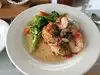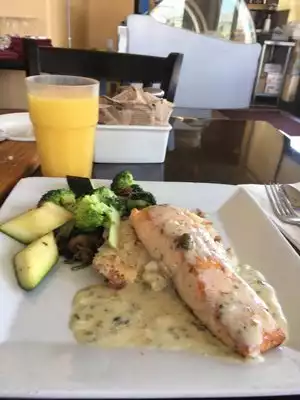 Delicious food and reasonable price. There were so many interesting things on the menu it was hard to choose, but we went for daily specials of halibut and stuffed salmon. These entrees cost more than others on the menu but we're still under $20. Entrees come with Dense bread with herb infused dipping oil and soup or salad. Lots of fresh of fresh basil was evident in our food. Service was very attentive.