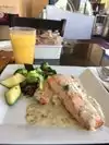We had a late breakfast and upon entering the restaurant it is clean and airy feeling good ambiance. We had a mushroom, spinach, cheese omelet split into two which they did it with a smile, a burrito breakfast and a half order of French toast that's popular here. We would say that the breakfast is good but looking at the lunch and dinner menu sounds good too. Will try to be back either lunch or dinner...