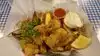 I really fancied Fried Oyster and chips, as I had only had them fresh before, so I noticed a sign for them and I found this restaurant down a little cooe, a little snicket , or alley way as we say in England. I saw their blackboard with fried oysters on it, and was lost. We walked in, and sat down on the lovely comfy padded swivel seats with backs. We ordered and while we were waiting , we looked around as this bar area looked like a pirate ships captain cabin, with a bell and all the decoration on the walls. It was too hot to sit out side, and we had ordered a takeaway, as I like Oysters and my hubby would eat chips til the cows came home and never put an ounze on. Our hosts gave us an iced water each while they cooked the meal,(12.95) and in a short while later we left with our Fried Oysters and chips, walked a few steps to a pair of empty wooden tip up seat, and shared the meal. The Oysters seemed to be dipped in egg and breadcrumbs and fried, and the fries wre still in their skins but thin - Yummy xx