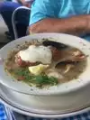 We had the special - bowl of chowder, 3 boiled shrimp and 2 oysters on half shell, with 2 pieces of sour dough bread. More than enough to fill both of us up for lunch. Praying Very pleasant outdoor venue.