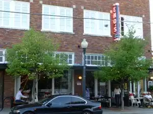 We love the thin crust pizza and all the local beer choices. Betty loved the meatball pasta. Organic Salads are great too! View from upstairs is great. Thursday's they have live music. Located in an eclectic shopping district. Across from a local art gallery. Nearby is Mantiques-great idea for more manly antique items.