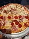 Stopped in at Enos on a Friday night. It was busy but they seated us right away. We had a party of 10 that came in at 4 different intervals. The waitress did not stop a beat with the great service. Each party ordered pizza and other items on the menu. I ordered the 14 inch pizza with bacon and pineapple, it was good.