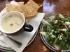 Amazing mushroom chowder soup with a baby salad of spinach, arugula, pear and blue cheese for a mid week lunch. My dining companion had the 8" pizza 2 topping lunch special that comes with soup. All around great value for quality food. Atmosphere is pleasant with the sun streaming in and the only negative was the loud music ( probably the choice of young staff - just not relaxing at lunch) Service was helpful and pleasant. A really great choice for lunch or dinner.