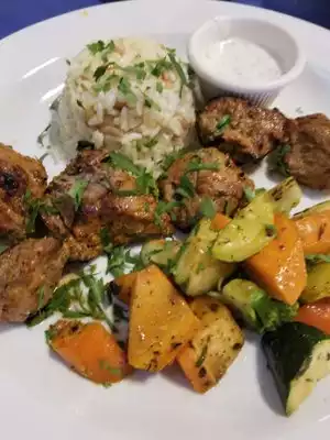 Located in a strip mall, parking is ample, the menu offers typical dishes as well as a salmon dish. We had a feta cheese started which was excellent(pita bread is $2.00 extra. The offer wine and a limited beer selection. We tried the salmon which was well prepared ,seasoned well ,served hot and well plated. We also had the chicken kabob which was also excellent. Service was well above expectations and a high light. They offer dessert as willow which again are excellent. Pricing is very reasonable. Worth a try.