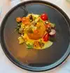 We sat on the patio with a superb view of the Bay Bridge, sunset was glorious. My salmon was absolute perfection. Perfect flavors, presentation. My hubby’s fish was excellent. The Brussels sprouts are insane!!!! Would HIGHLY recommend.
