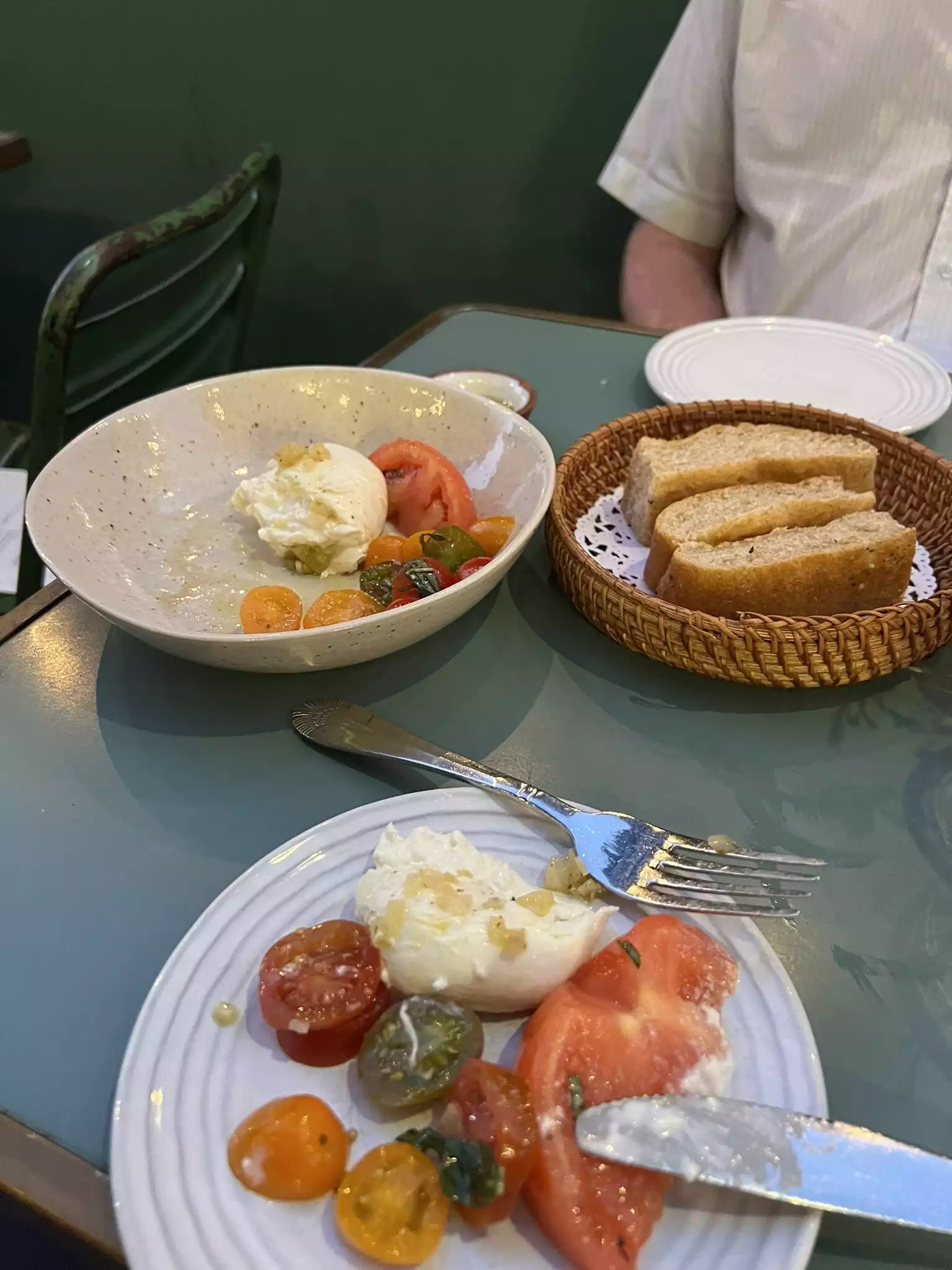 First, free bread with oil and aceto, very good bread (I do rate some restaurants by the bread and this completely aced the bread test). The burrata was exquisite. The kale salad amazingly fresh. The chicken was also quite good. The food took a long time to arrive (the burrata right away but the salad and kale came a looot later). It's also cash only. The wine I think pinot grigio was also great.