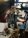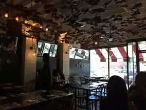 The skinny: Parking- public lots, free to $10 Decor- terrific tile floor Restroom- none, you have to use one in the square Service- slow Food- tasty After shopping at Crate and Barrel, we stopped by to grab a quick bite. Its a bit pricey for the portion size but the food is quite flavorful. The disturbing thing was that as each table emptied around us they never cleared any of the tables. So we were surrounded by dirty dishes and food scraps. Plus there was a family there that had a small child running back and forth thru the restaurant. It's disruptive and rude and the people who run this business obviously didn't care.