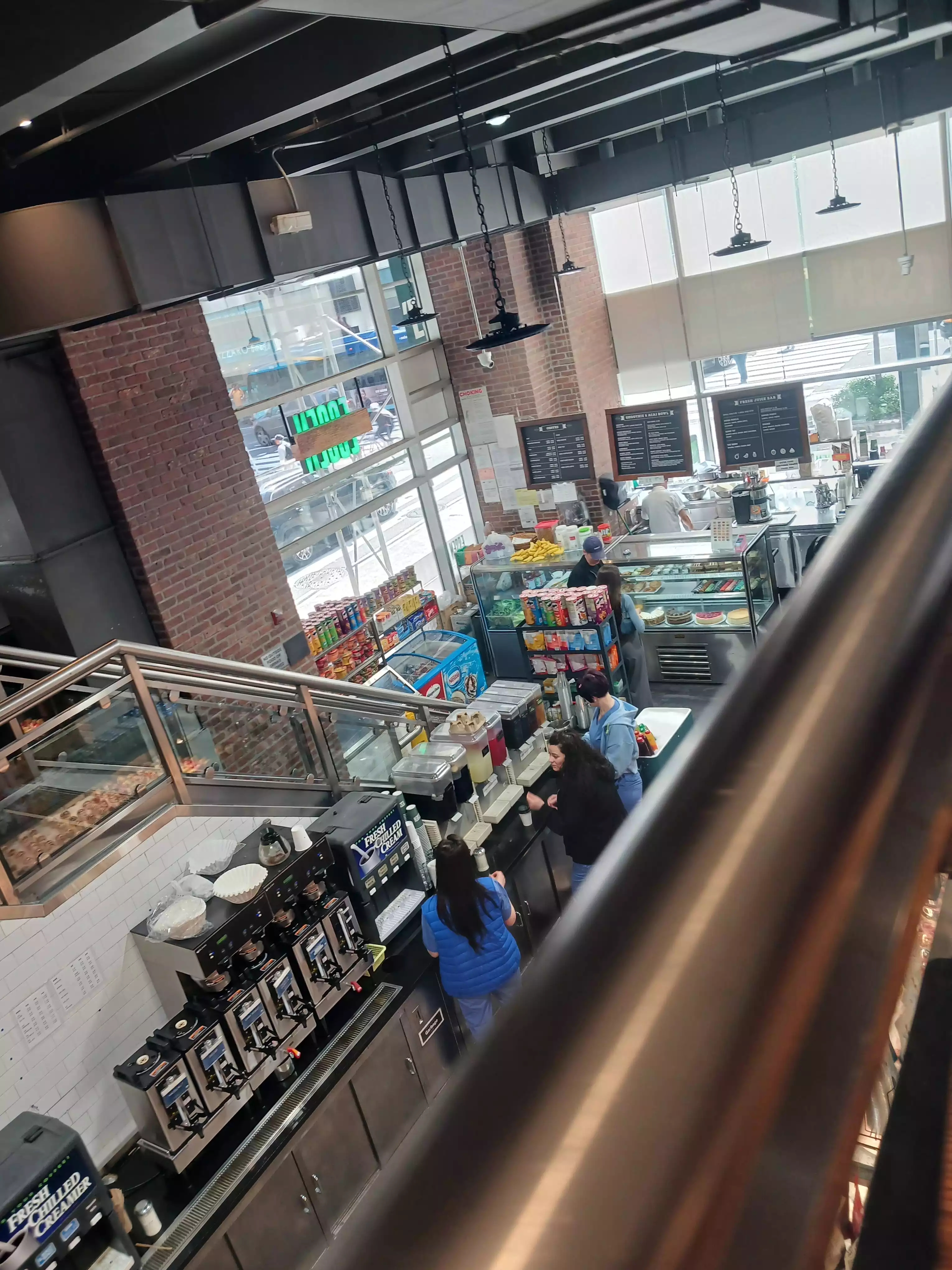 Lots of great fresh food options, with a hot bar, salad bar, and place to order other options.I loved the oatmeal bar, with options for milk, coconut milk, etc. Good seating area upstairs.
